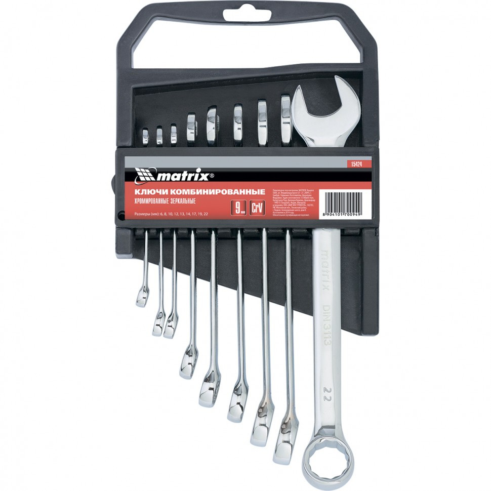 Набор ключей комбинированных 6-22 мм CR-V (9 шт.) зеркальная полировка "MATRIX"