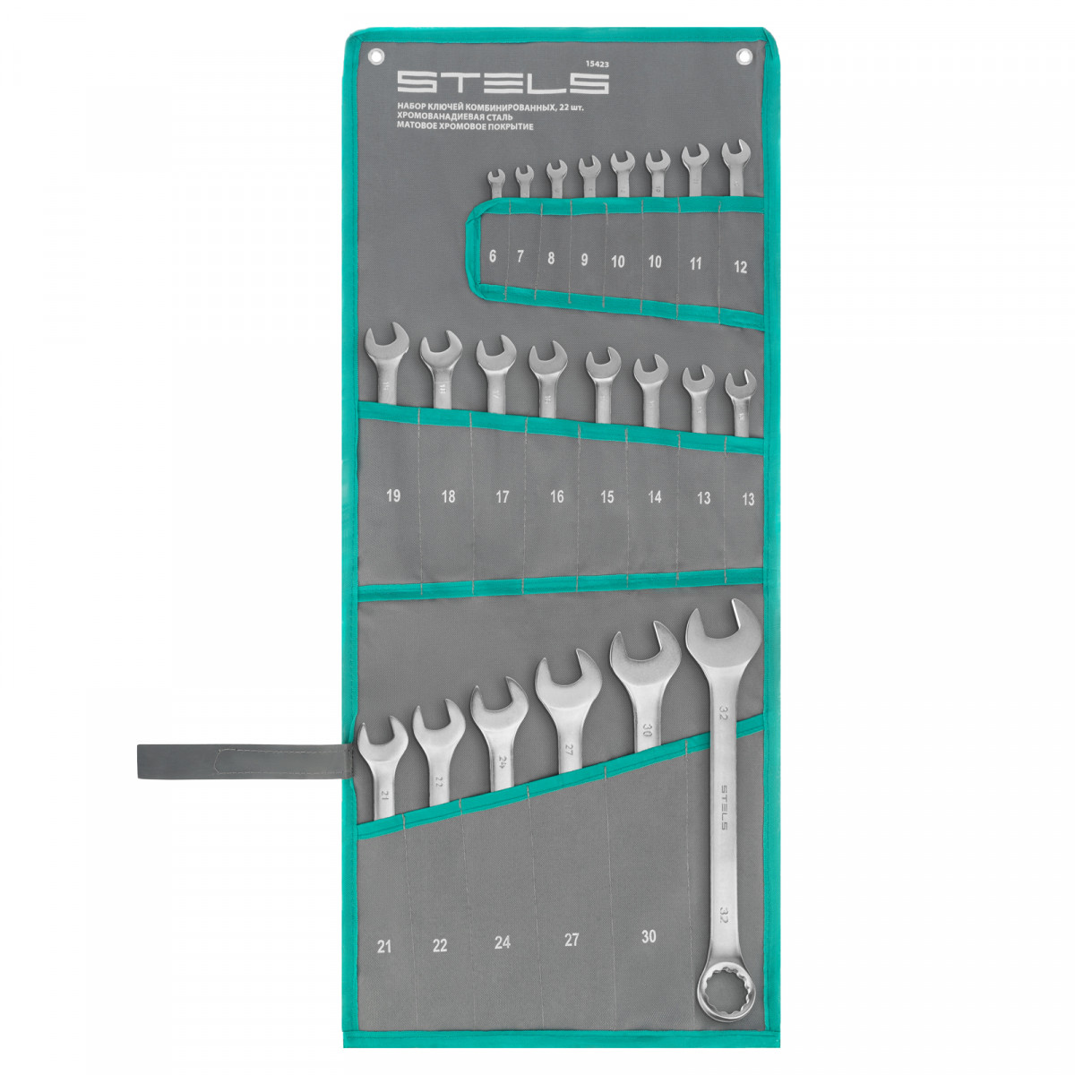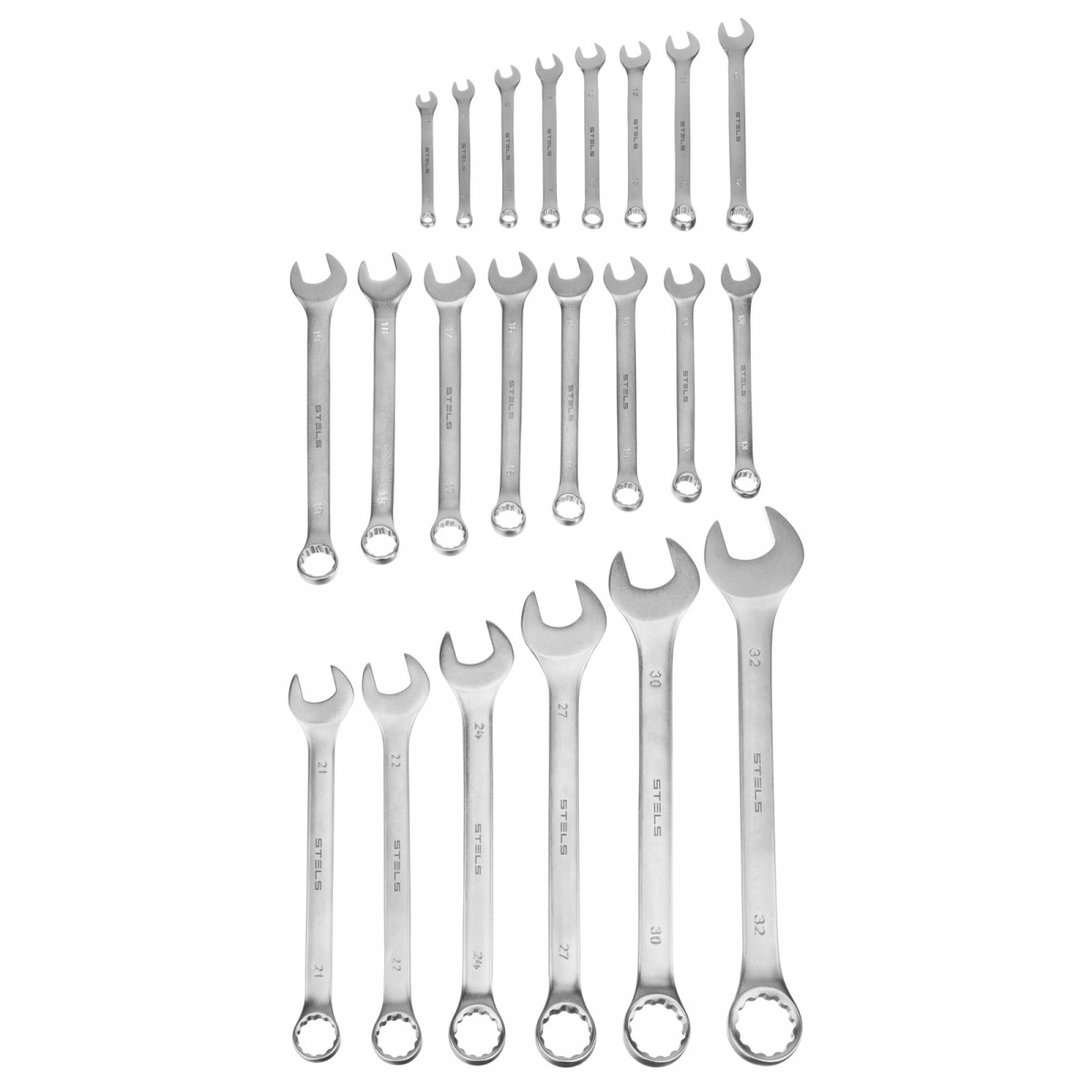 Набор ключей комбинированных 6-32 мм, 22 шт, CrV, матовый хром Stels