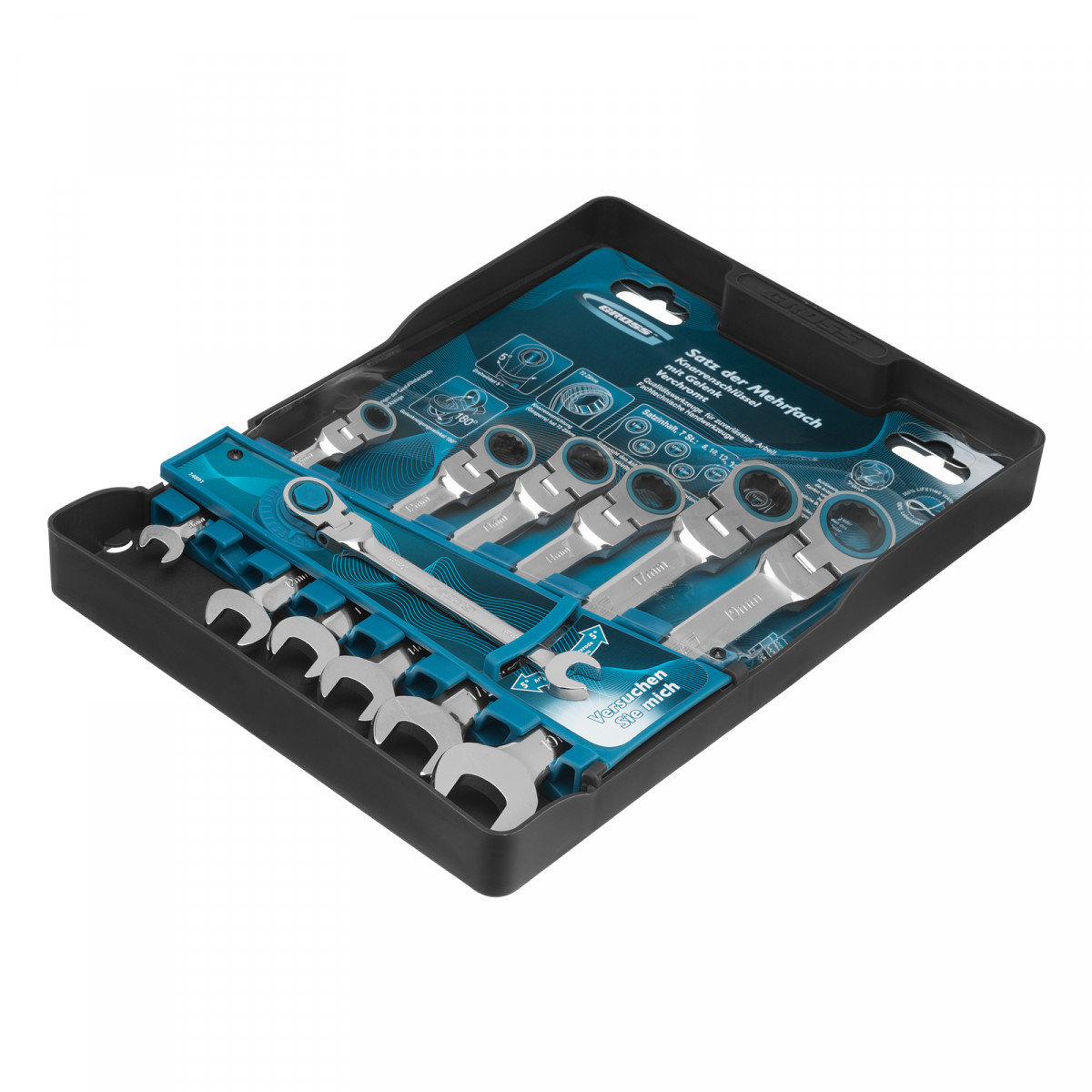 Набор ключей комбинированных с трещоткой, 8-19 мм, 7 шт, шарнирные, CrV Gross