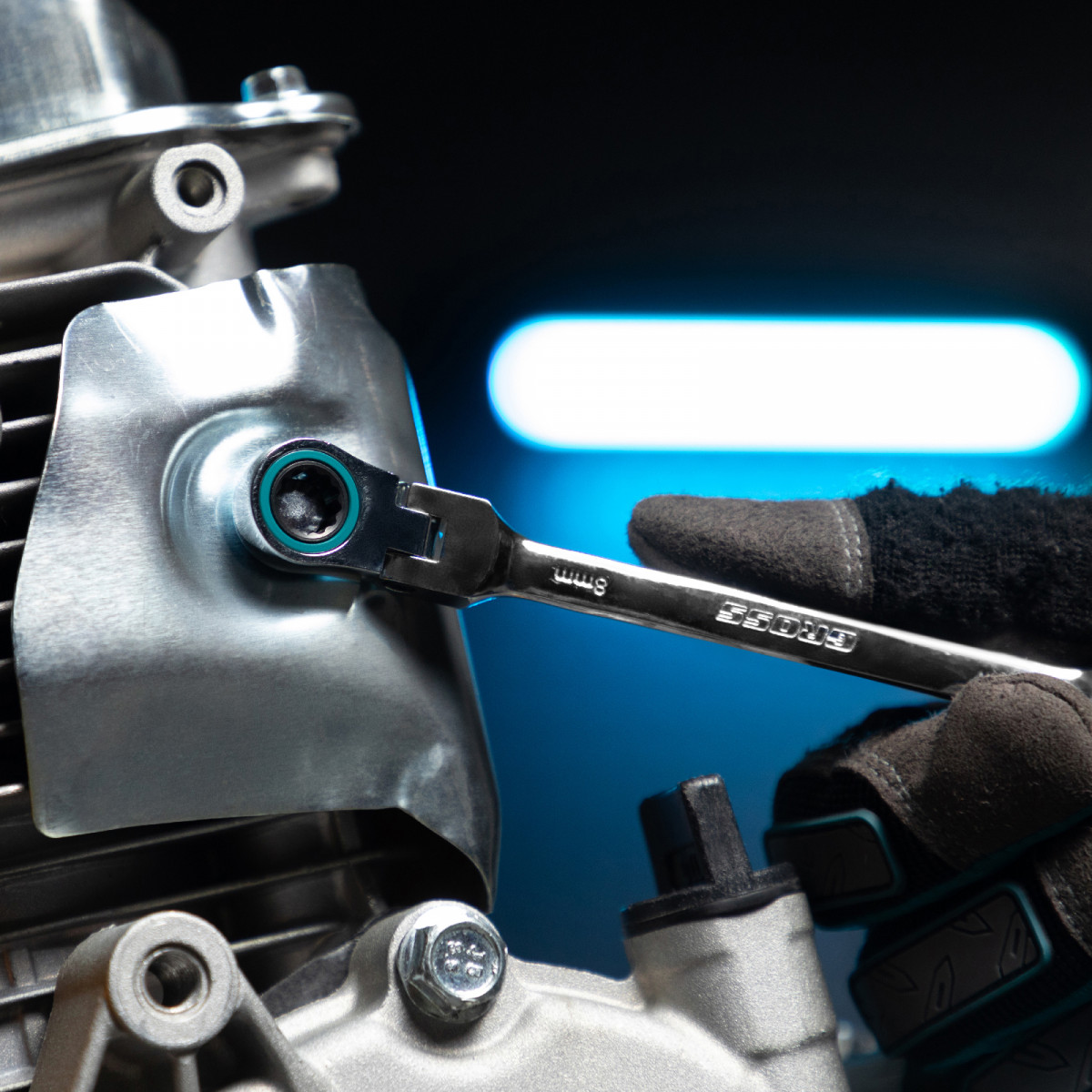 • Работа с крепежами в разных плоскостях — накидные головки с шарнирным механизмом изменяют свое положение на 180 градусов по вертикали.