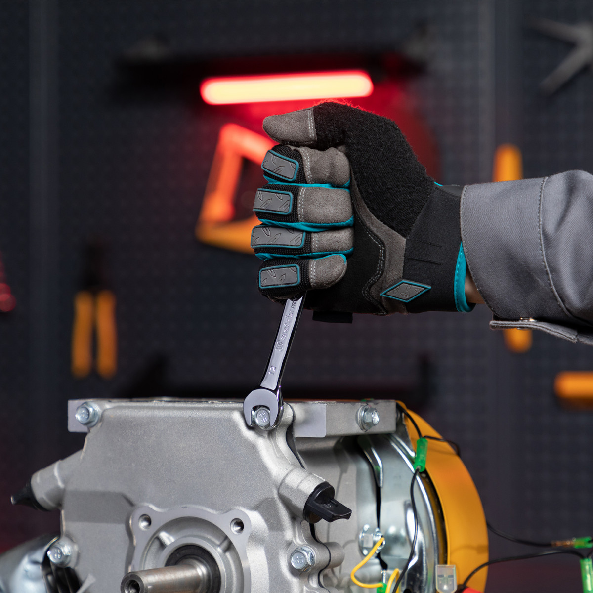 • Удобная работа в труднодоступных местах — храповой механизм на 72 зуба обеспечивает плавное вращение (шаг трещотки составляет 5°), а шарнир позволяет поворачивать рабочую часть под углом.
