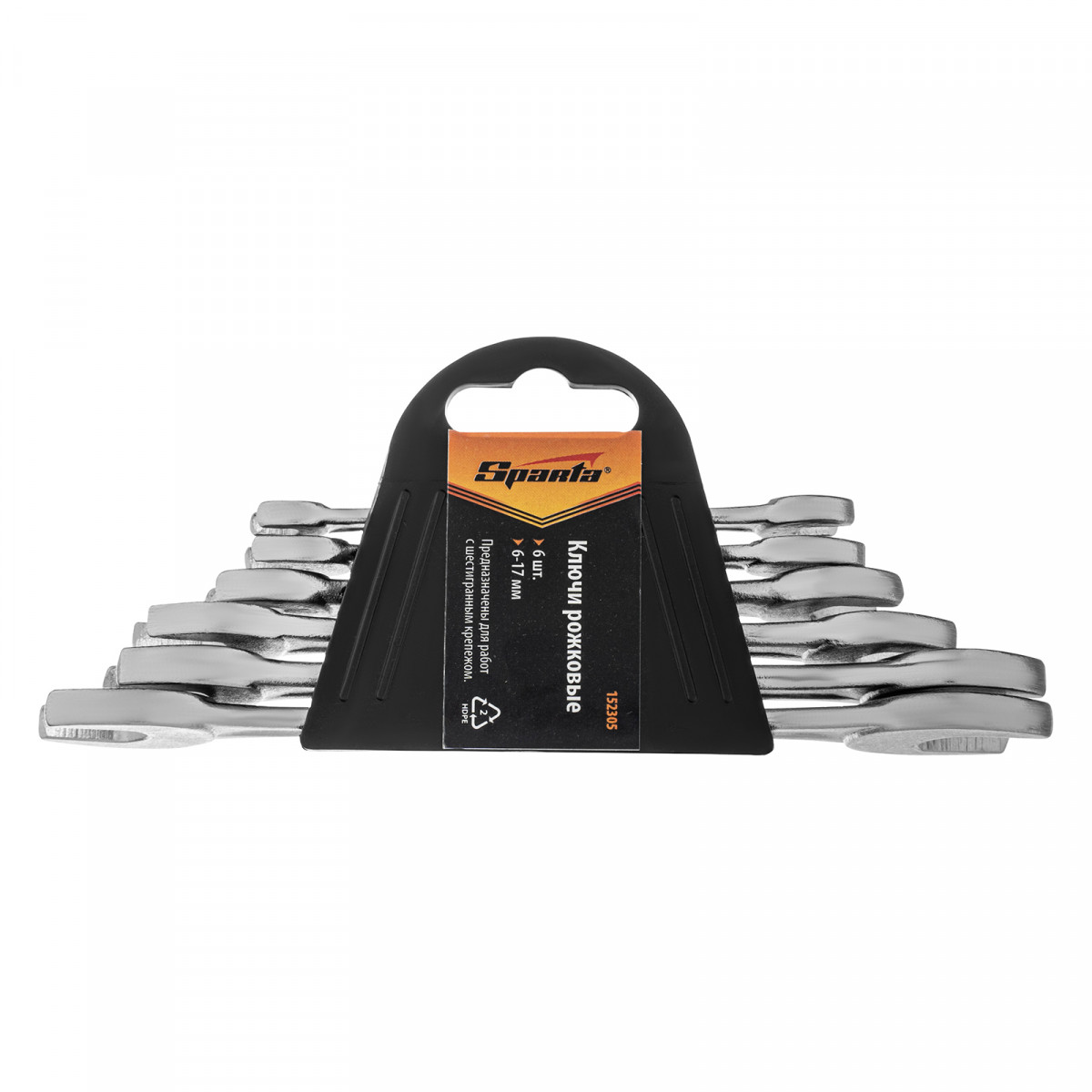 Набор ключей рожковых, 6 х 17 мм, 6 шт, хромированные Sparta