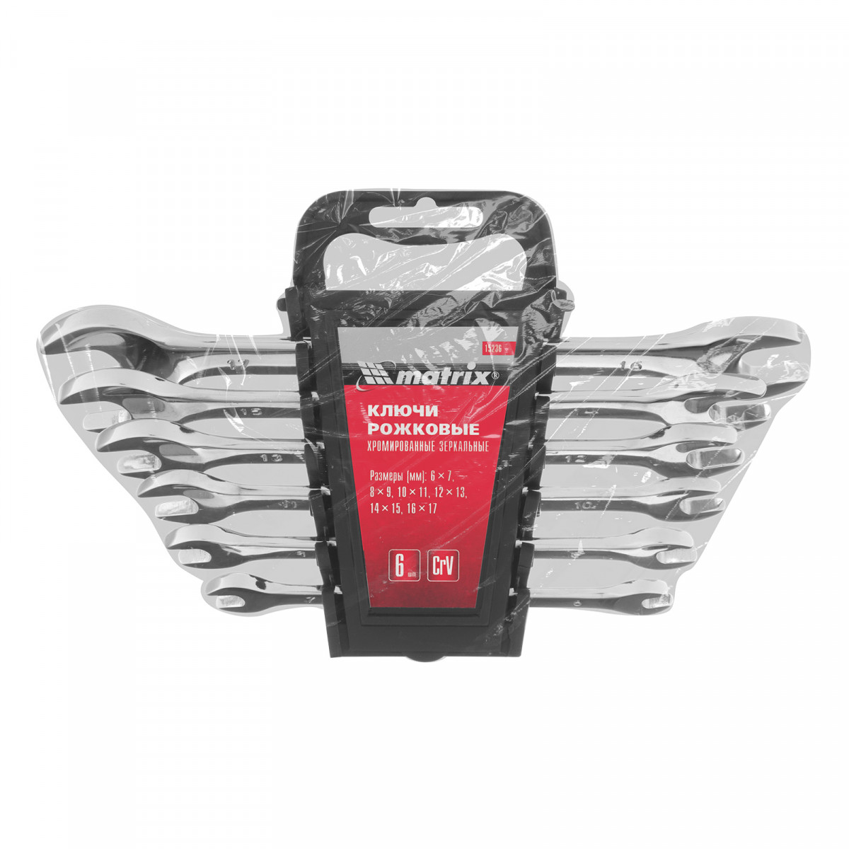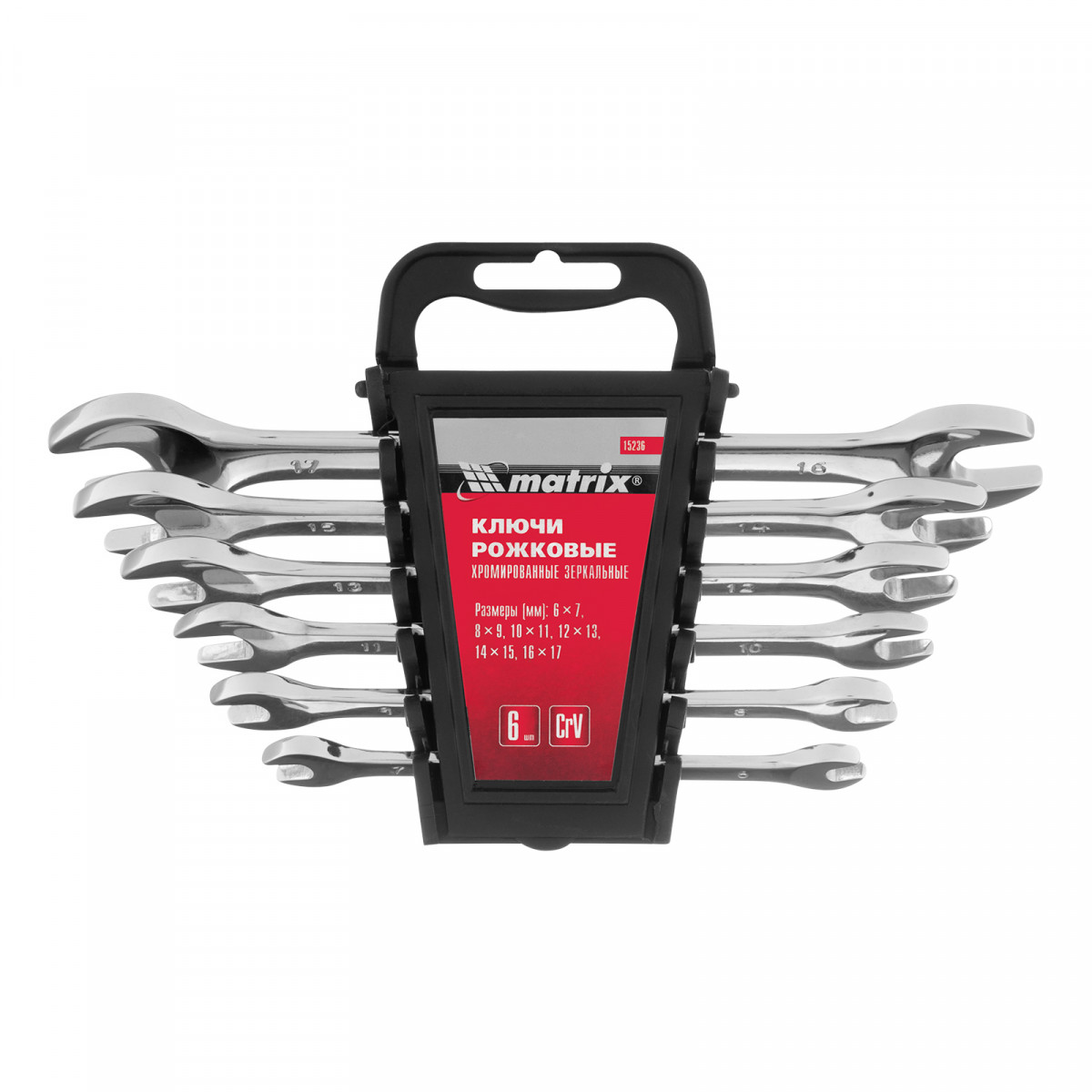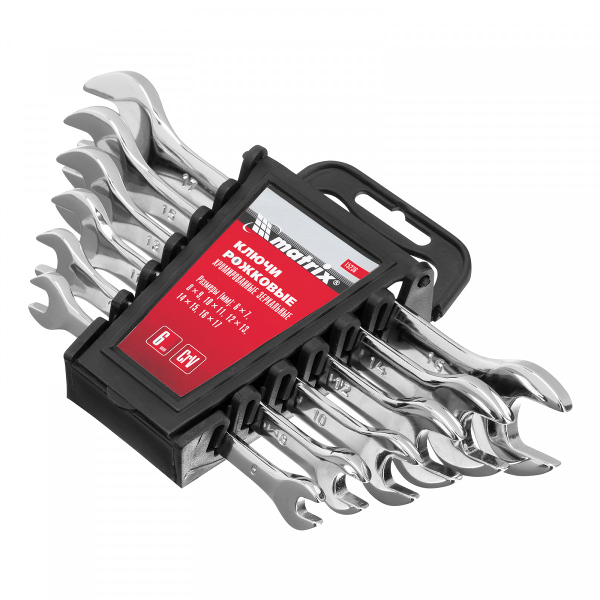 Набор ключей рожковых 6 шт, 6-17 мм, CrV, Elliptical, зеркальное хромирование Matrix