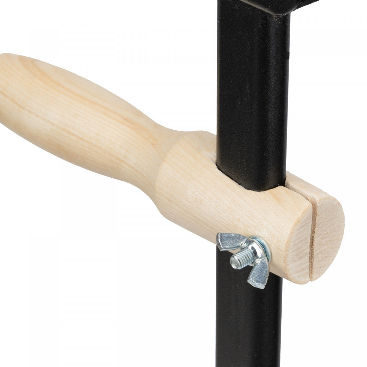 - Комфортная работа — в набор входит подвижная деревянная рукоятка для установки на косовище, облегчающая удержание косы.