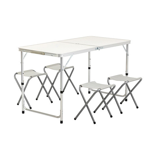 Комплект складной мебели для четырех персон, включающий складной стол и 4 стульчика. Оптимальный вариант для организации пикников, выездов на дачу, охоту или рыбалку - стулья размещаются внутри стола, который убирается в специальный чемодан.