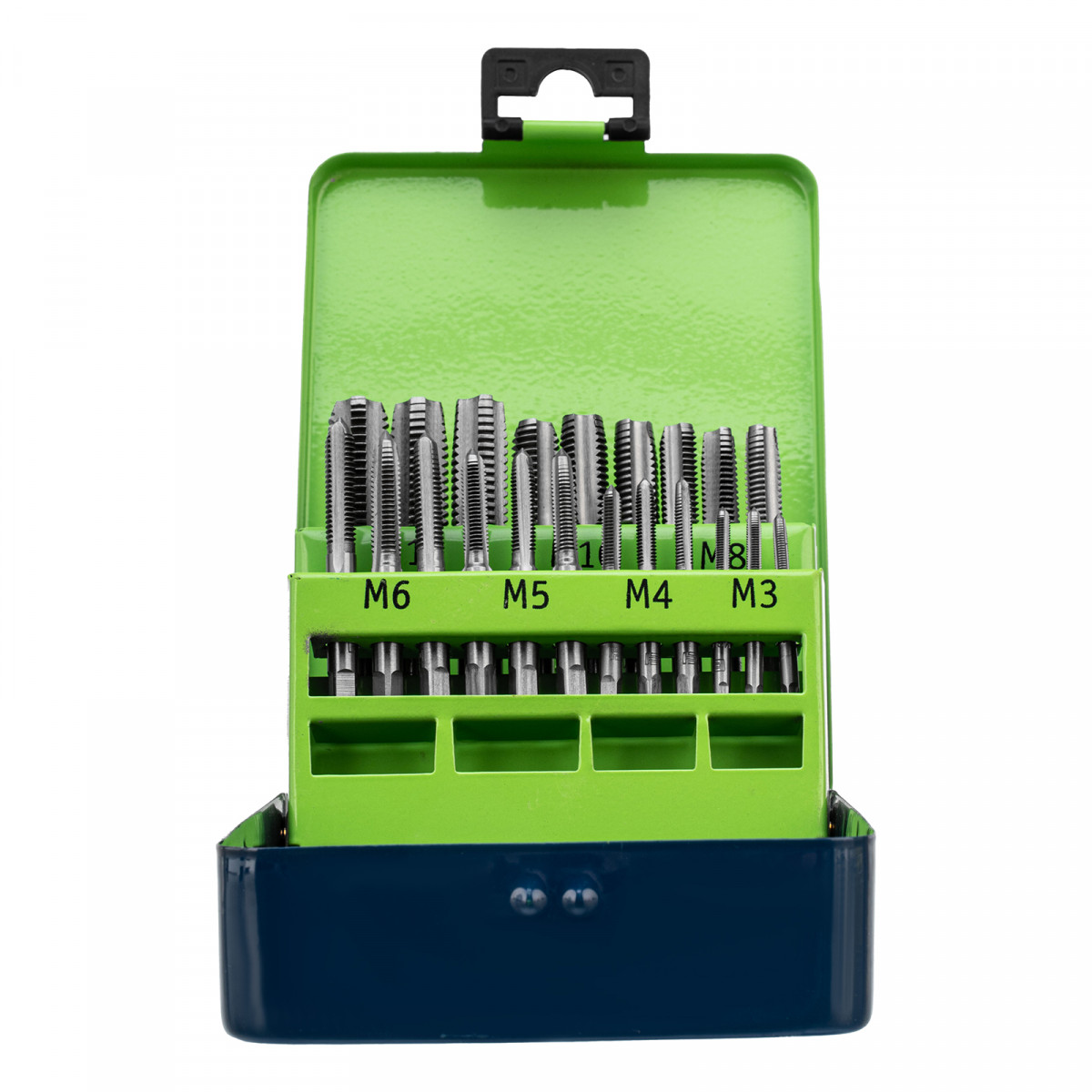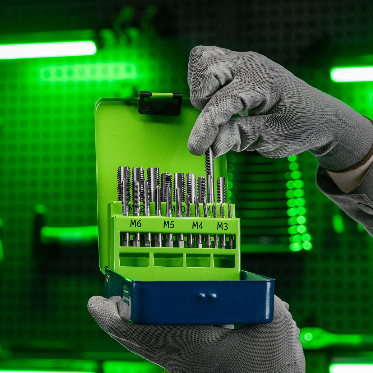 • Высокое качество резьбы — в набор входит по 3 метчика каждого размера: №1 для первичного прохода, №2 для повышения точности витков и №3 для финишной доводки.
