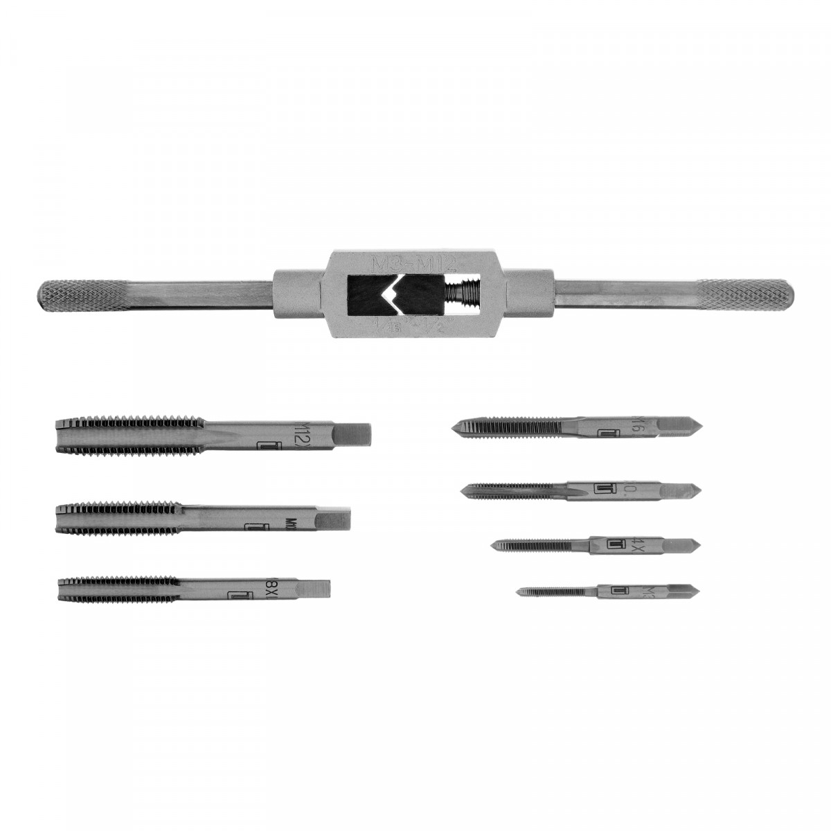 Набор метчиков М3-М12 Сибртех 77308 состоит из 8 предметов — метчикодержателя и метчиков, позволяющих вручную нарезать внутреннюю резьбу в сквозных и глухих отверстиях. Оптимален для работы с цветными металлами. Набор будет полезен при ремонте оборудования, автомобилей, а также пригодится в быту.