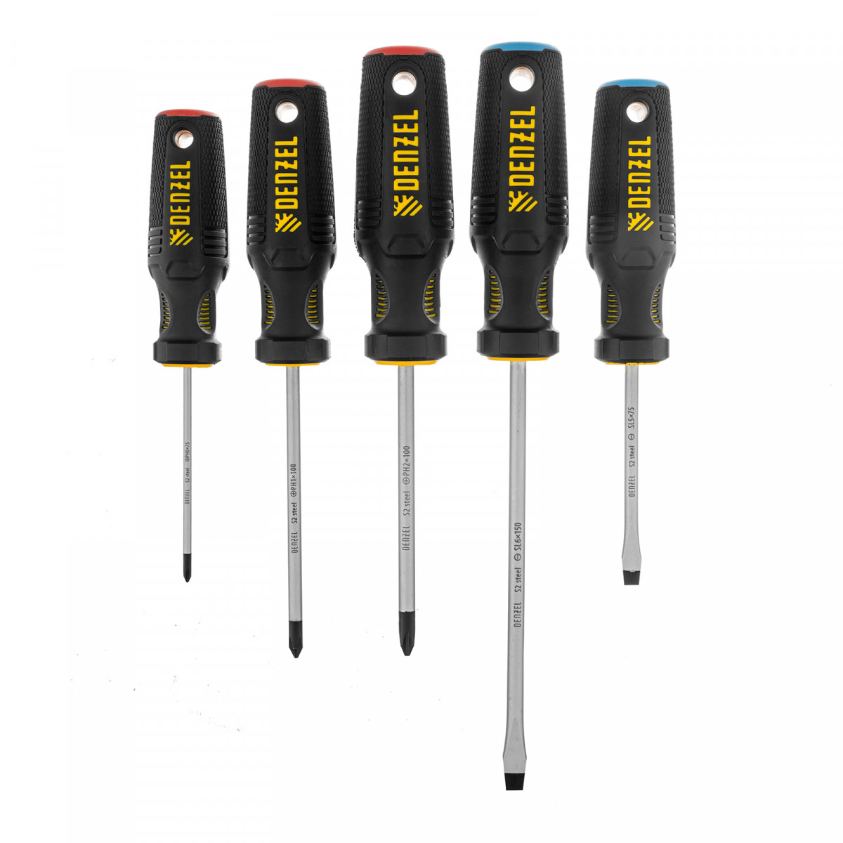 Набор отверток, 5 шт., PH+SL, S2, 3к рукоятка Denzel