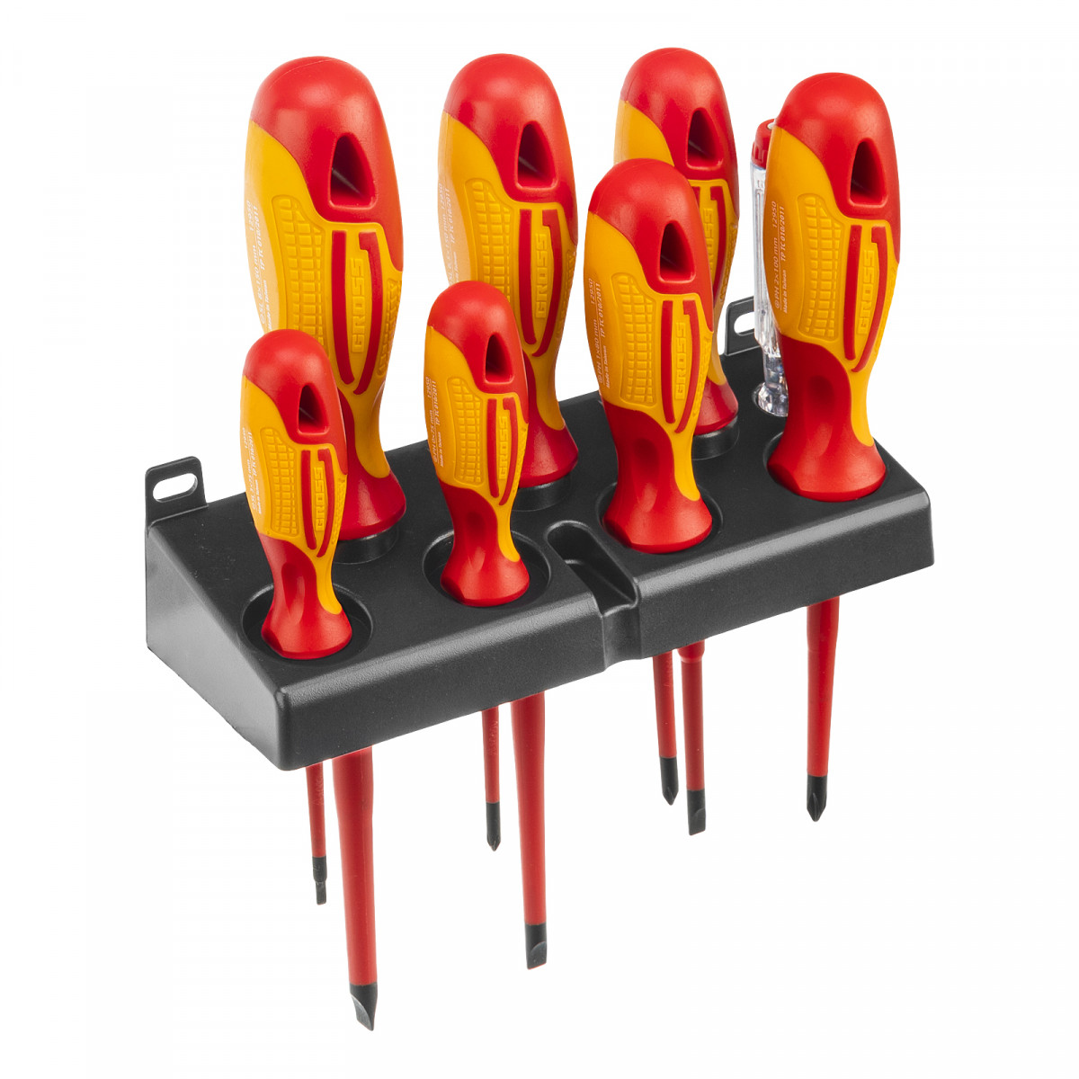 Набор отверток диэлектрических до 1000 В, 8 шт, тестер, CrMo, двухкомпонентные рукоятки Gross