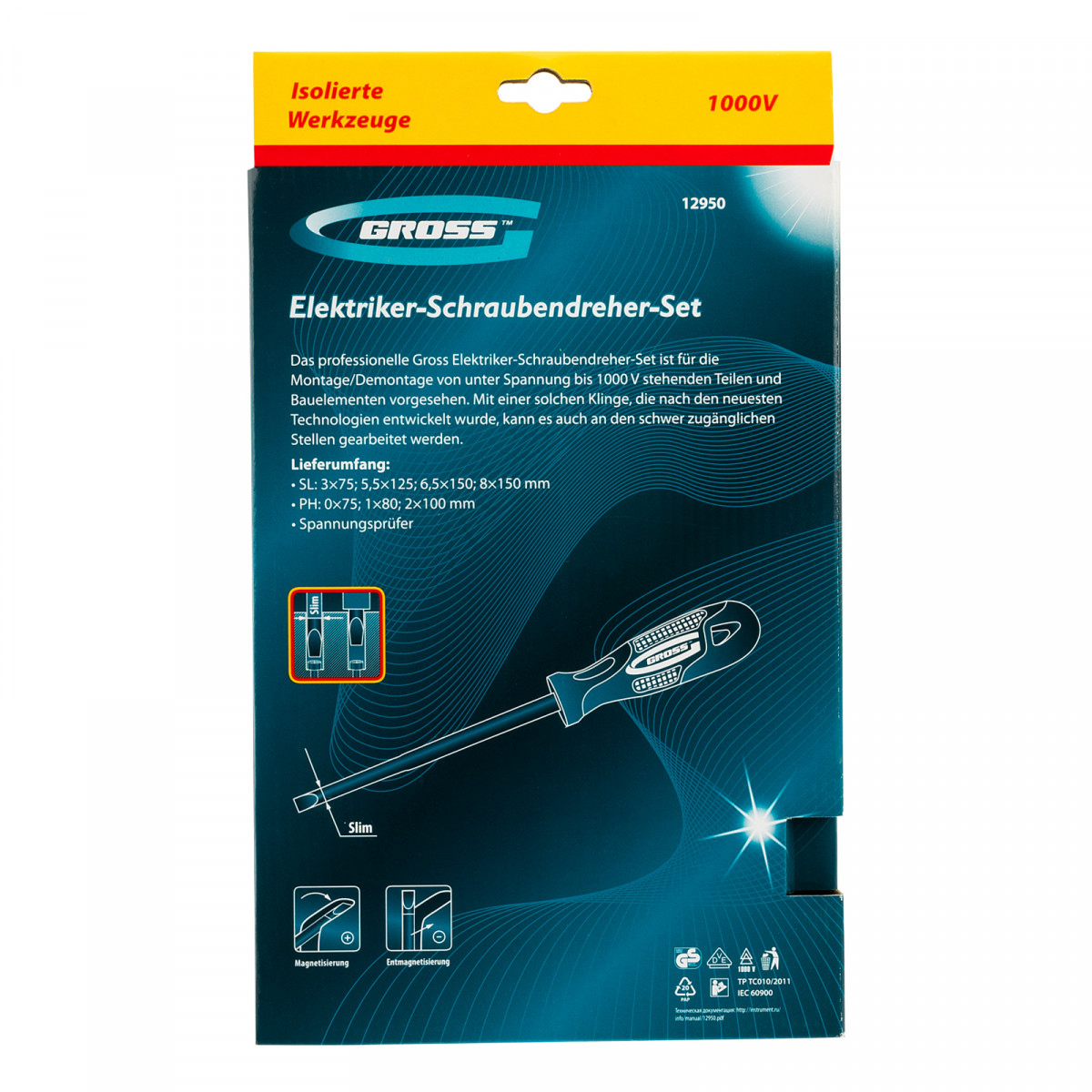 - Сертификаты VDE и GS подтверждают качество и безопасность отверток.