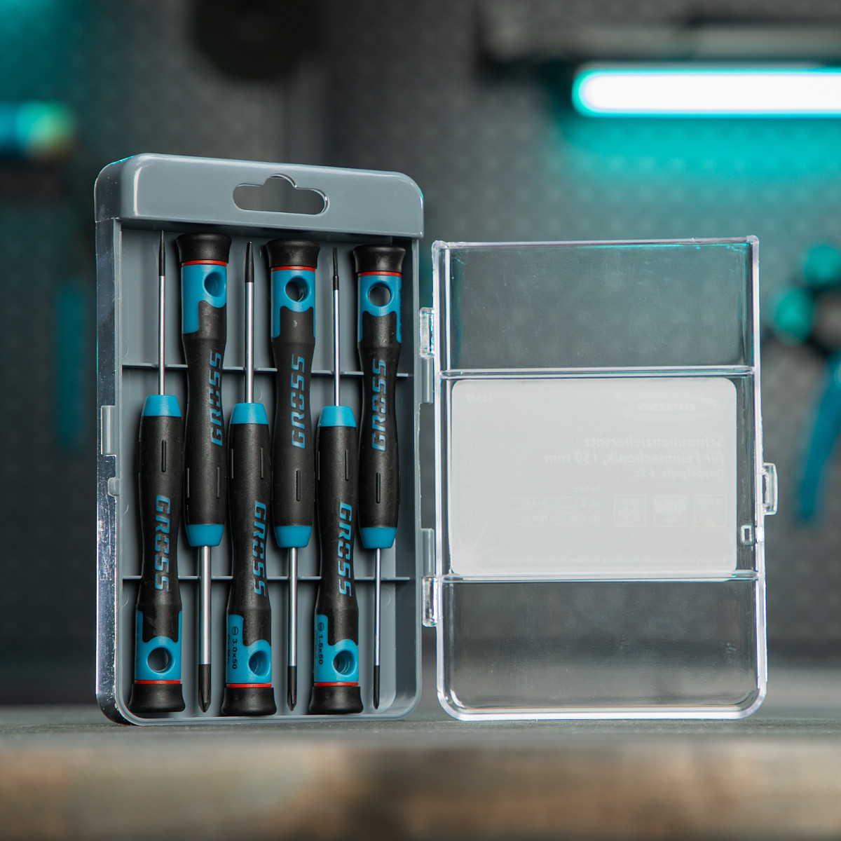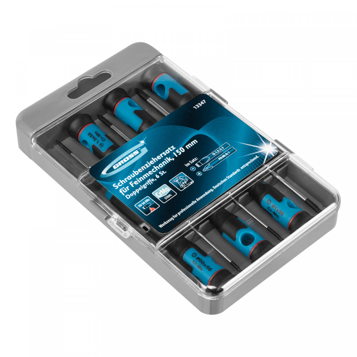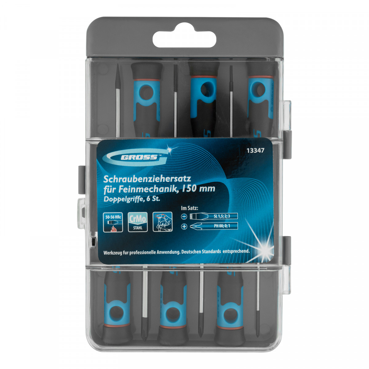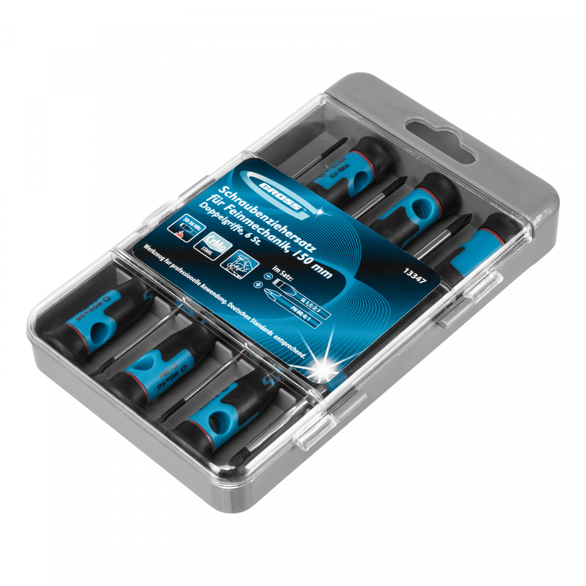 Набор отверток для точной механики, CrMo, двухкомпонентные рукоятки, 6 шт, пластиковый бокс Gross