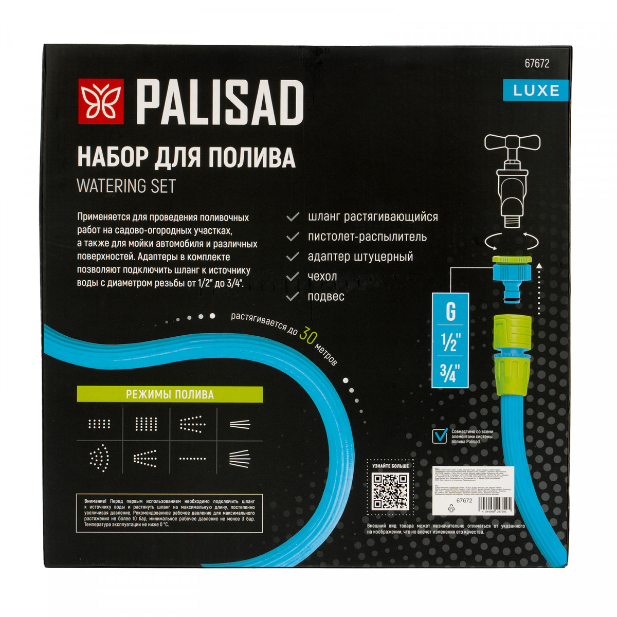 Набор поливочный, шланг 10-30м, пистолет 8 реж., чехол, подвес, LUXE Palisad