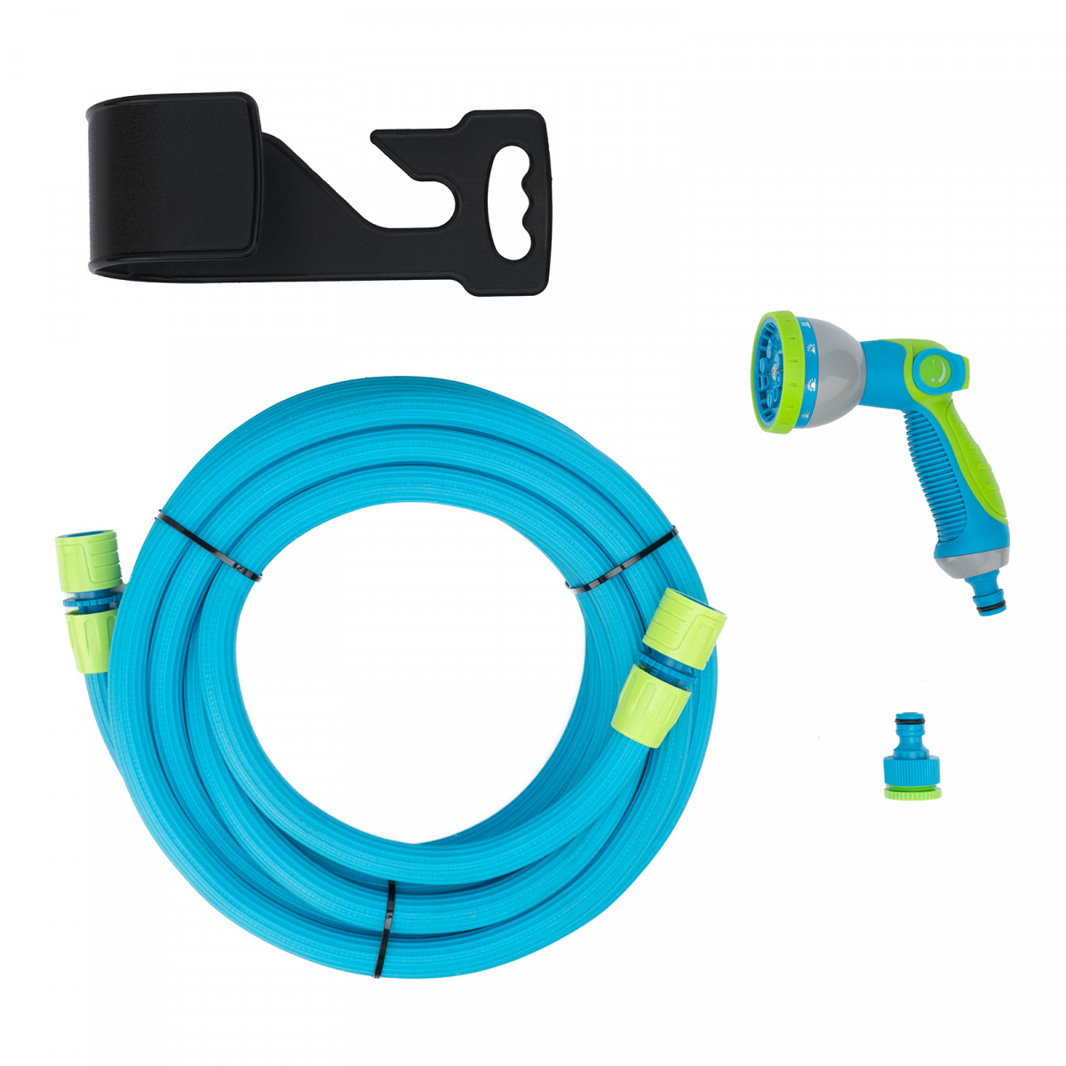 Поливочный набор Palisad LUXE 67672 включает в себя силиконовый шланг, растягивающийся до 30 м, 8-режимный пистолет-распылитель, штуцерный адаптер, чехол и подвес. Предназначен для полива растительности на дачном участке, в парке или сквере также подходит для мойки автомобиля и различных поверхностей. Представляет собой полностью готовую к работе систему. Соединитель с переходником позволяет подключать шланг к крану или отводу с резьбовым выходом диаметром 1/2" или 3/4".