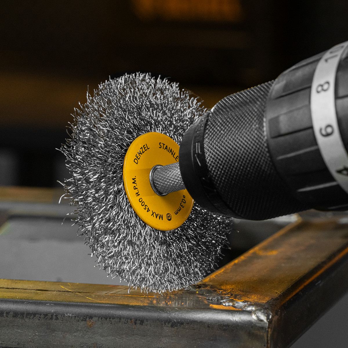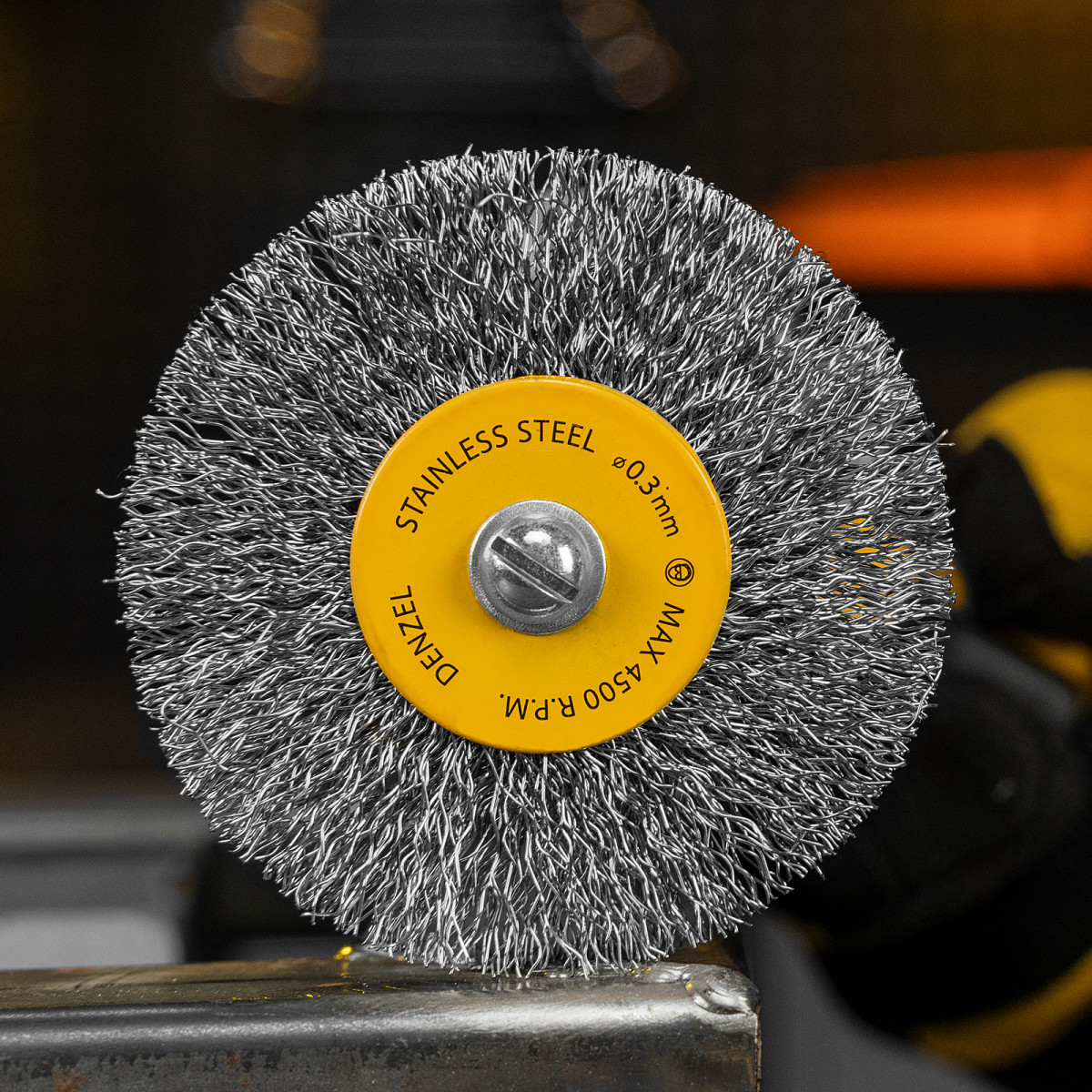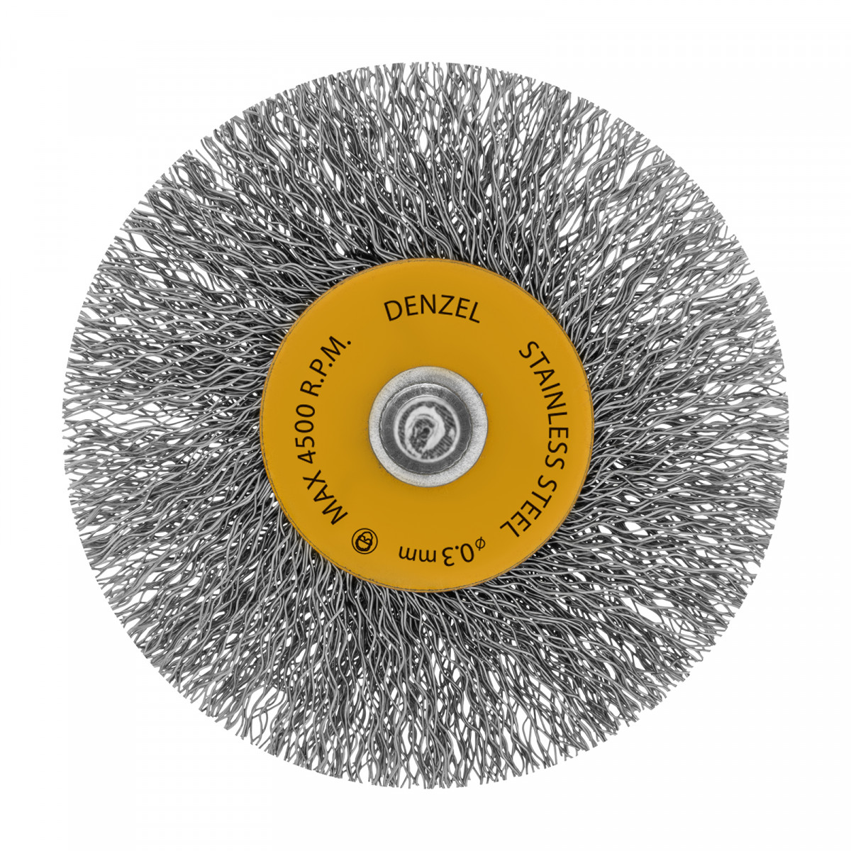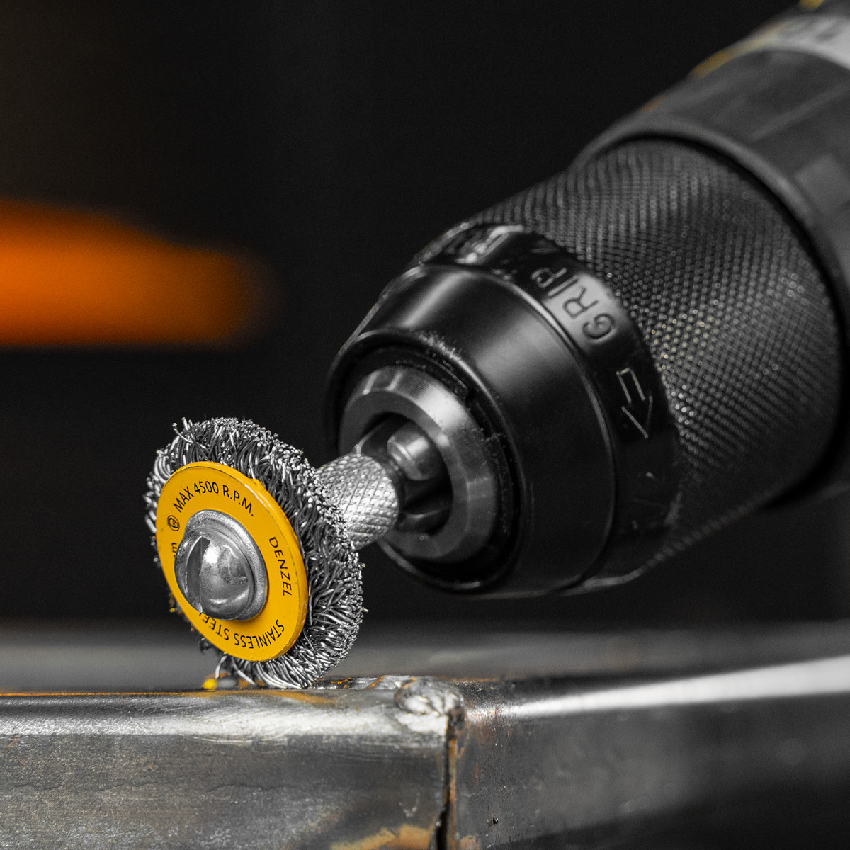 Набор щеток для дрели, 5 Плоских 25-38-50-63-75 мм, шпилька, нерж. вит. проволока Denzel