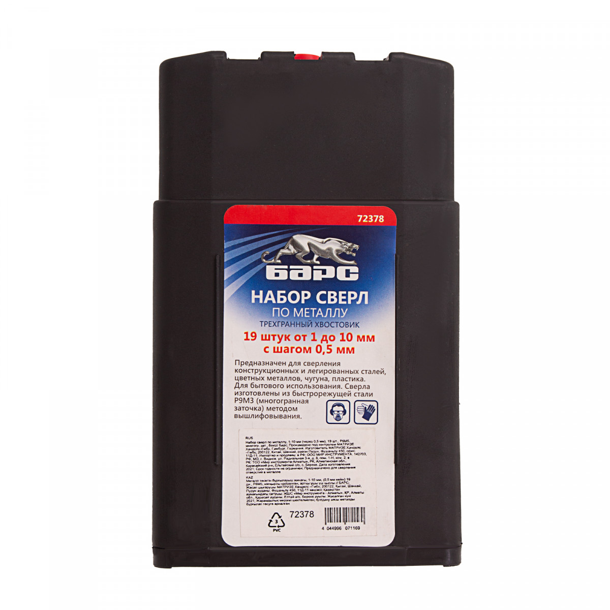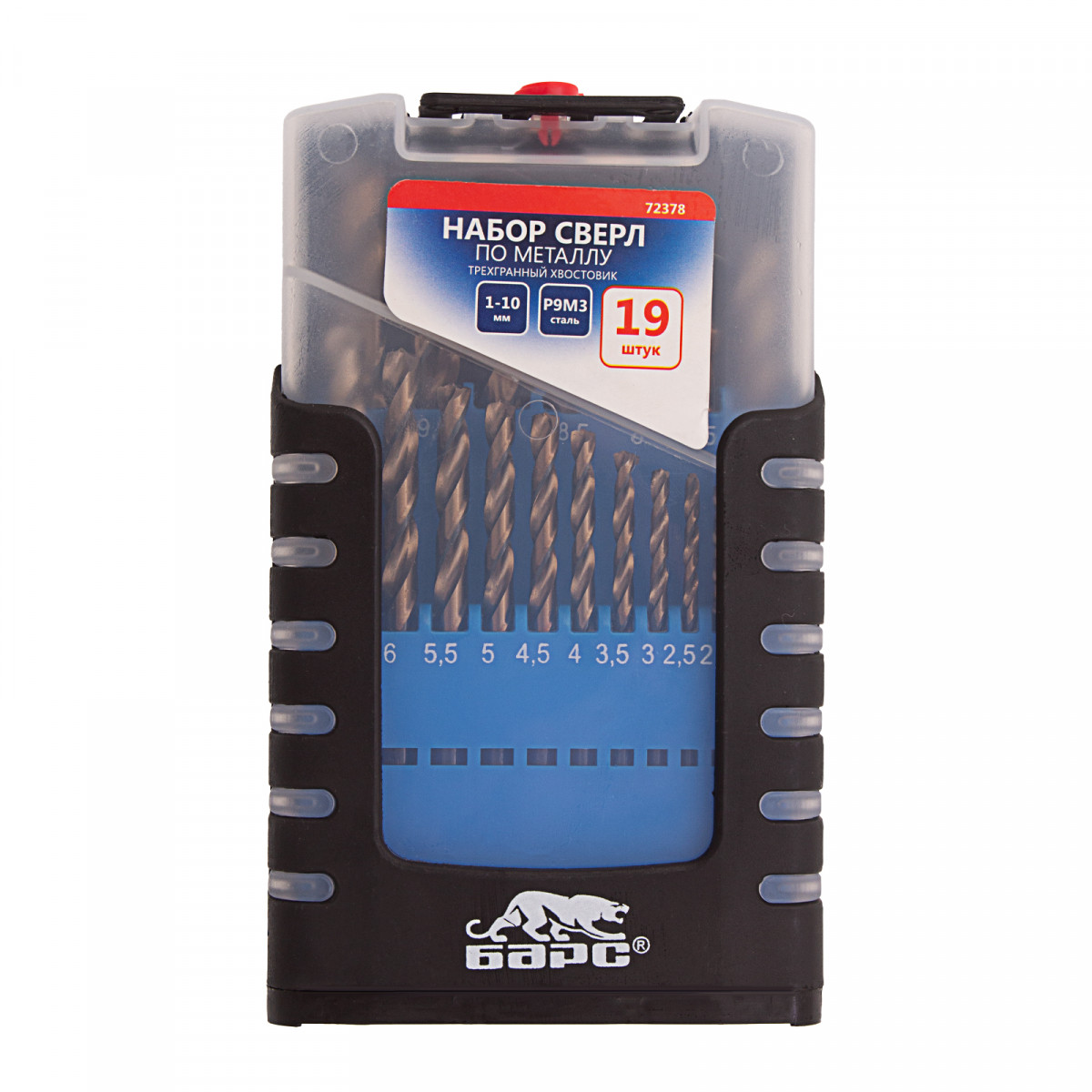 Набор сверл по металлу, 1-10 мм (через 0.5 мм) 19 шт, Р6М5, многогранная заточка, бокс Барс