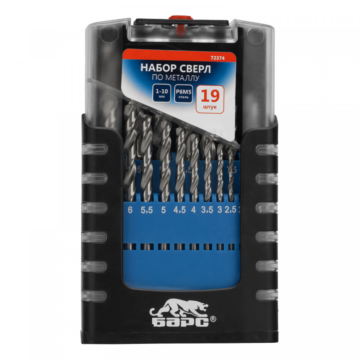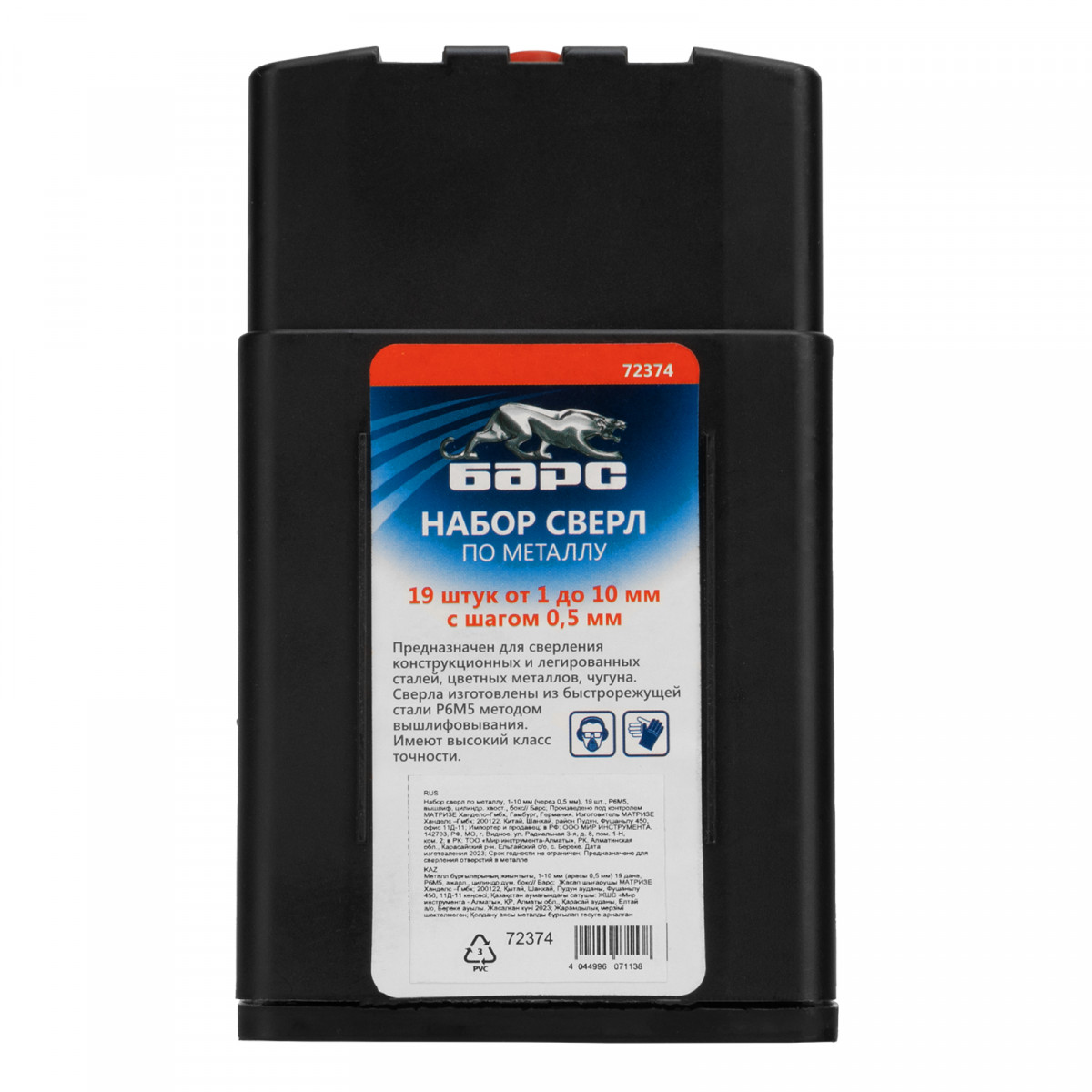 Набор сверл по металлу, 1-10 мм (через 0.5 мм) 19 шт, Р6М5, вышлиф, цилиндрический хвостовик Барс