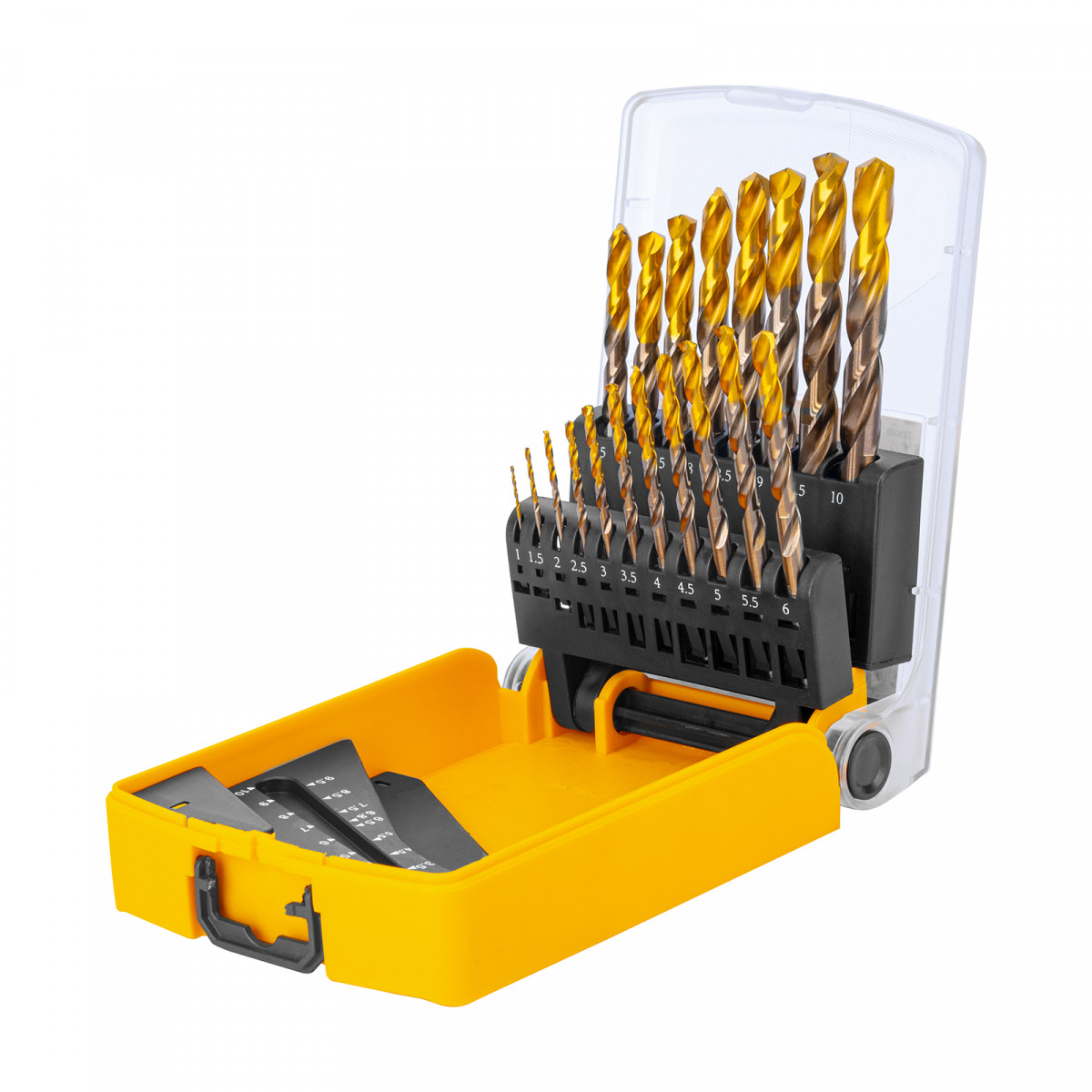 Набор сверл по металлу, 1-10 мм, Р6М5К8-TiN, Golden Tip, 19 шт Denzel