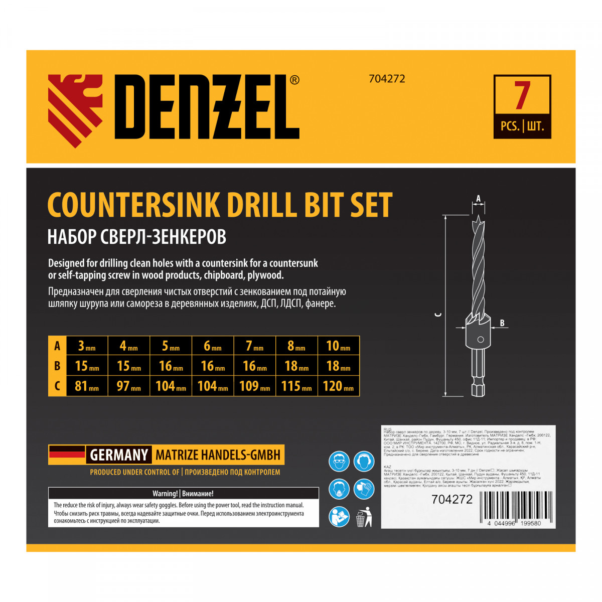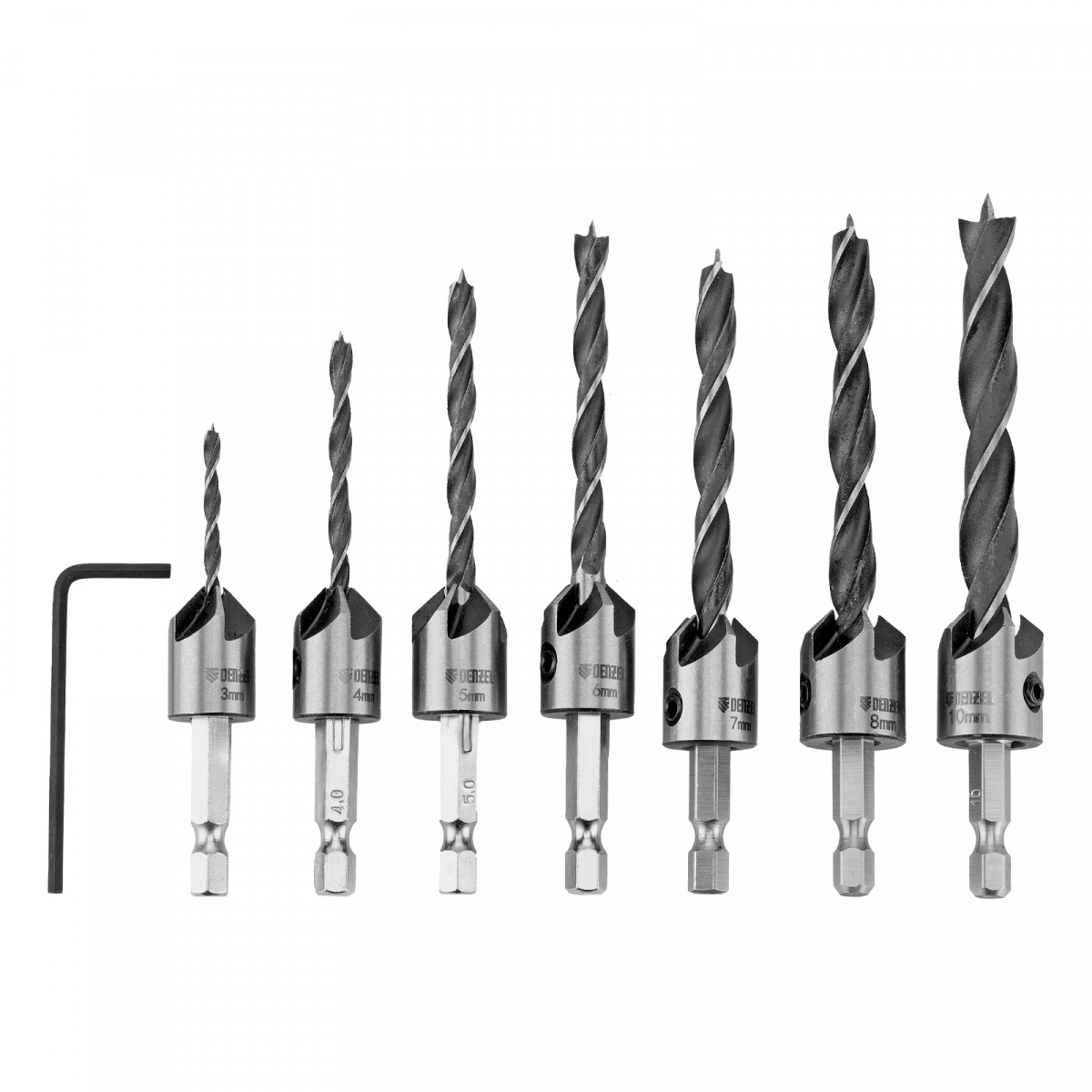 Набор сверл зенкеров по дереву, 3-10 мм, 7 шт Denzel