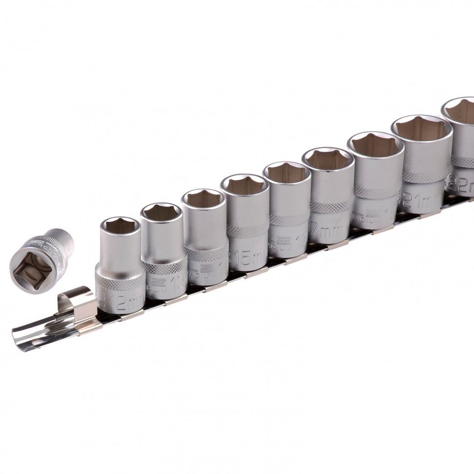 Набор торцевых головок, 1/2, шестигранные, CrV, 10 шт, 10-22 мм Stels