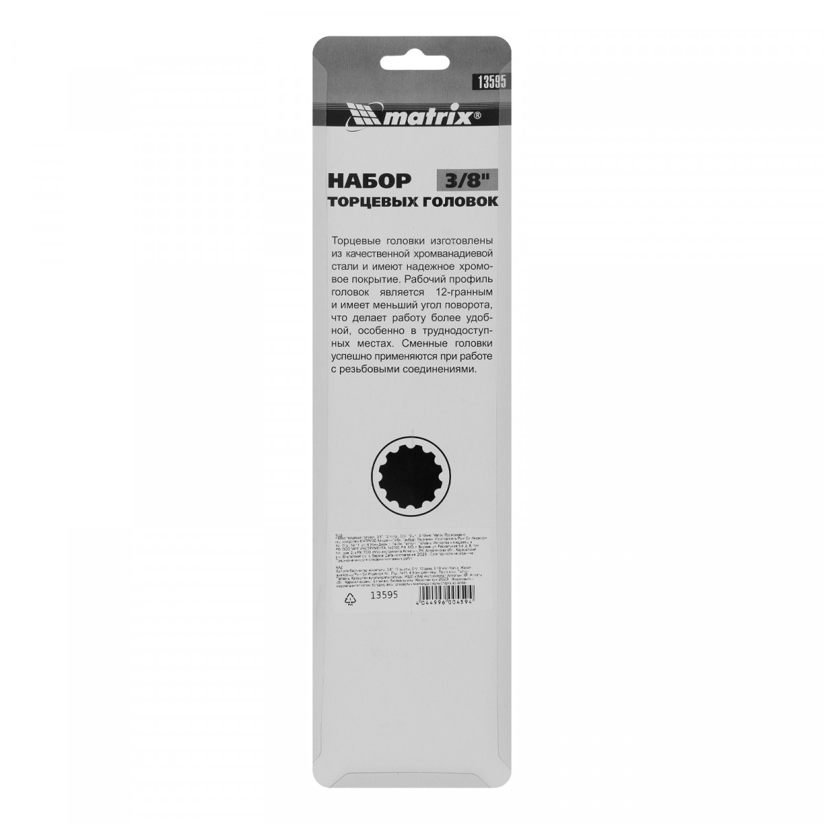 Набор торцевых головок, 3/8", 12 гранные, CrV, 9-19мм, 10 штук Matrix