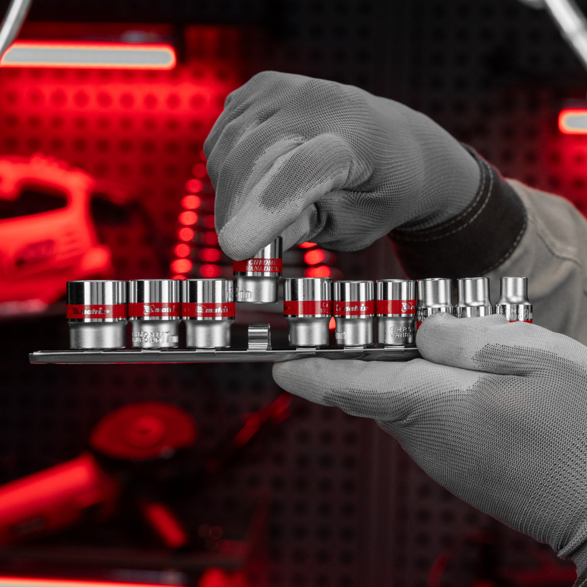• Быстрый поиск нужной торцевой головки — на корпусах насадок имеются красные полоски и маркировка с обозначением размера.