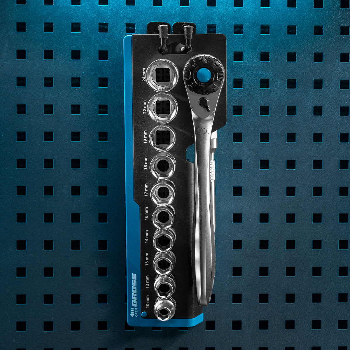 Набор торцевых головок, трещотка 120 зубьев, 1/2", CrV, 12 предметов Gross