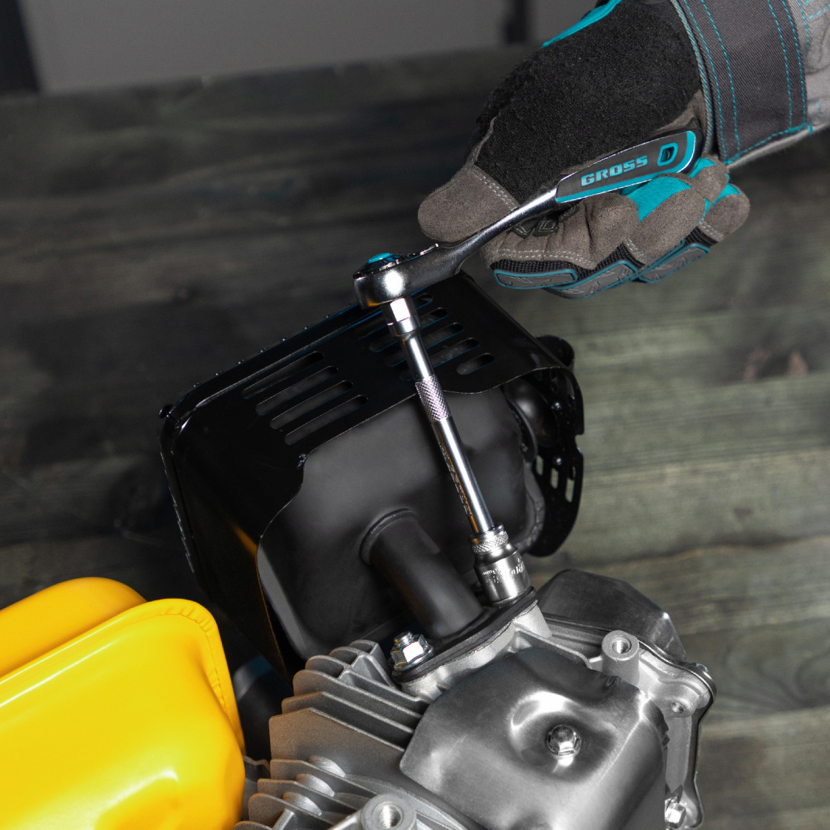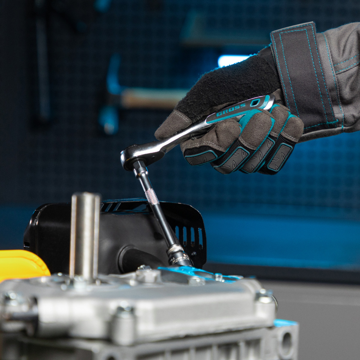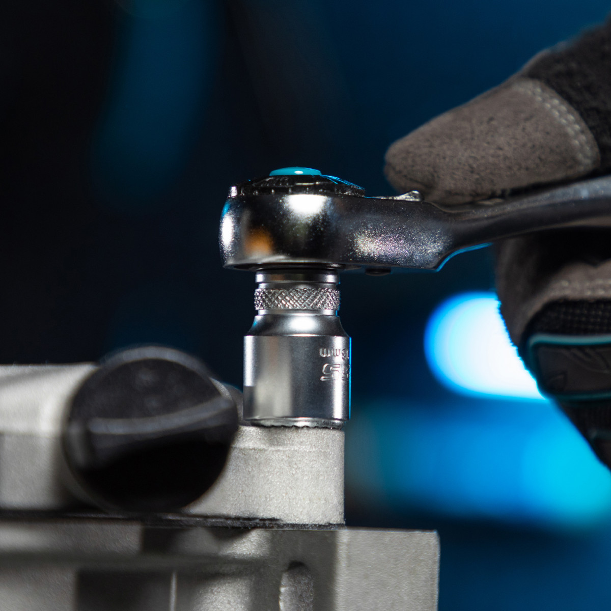 - Удобная работа в труднодоступных местах — цельнокованая трещотка со 120 зубьями позволяет вращать крепеж максимально плавно и мягко.