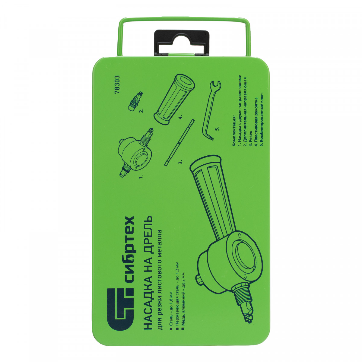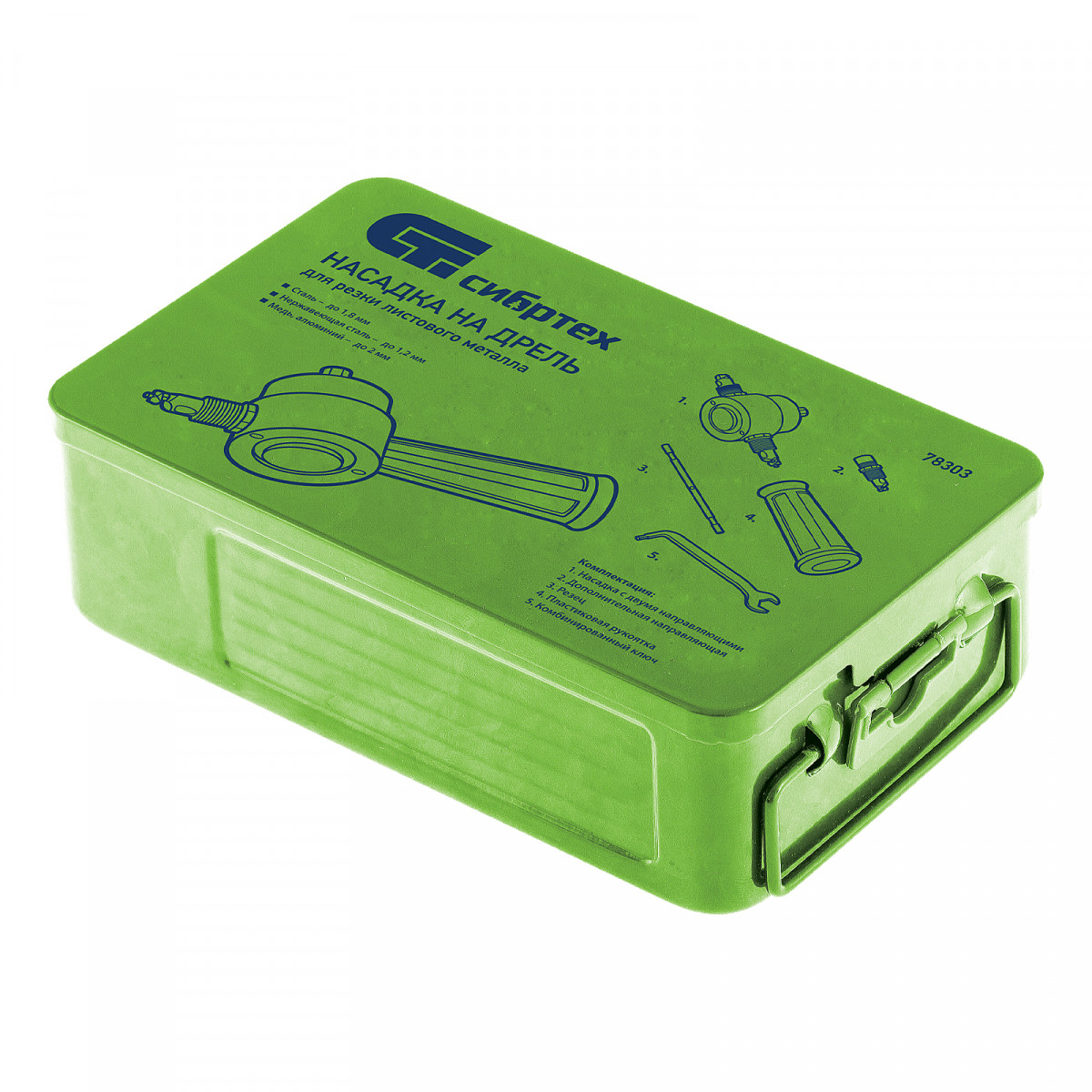 Насадка на дрель для резки листового металла до 1.8 мм металлический кейс Сибртех