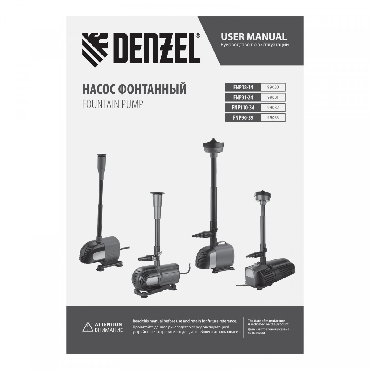 Насос фонтанный FNP18-14, 18 Вт, подъем 1,4 м, 750 л/ч, колокольчик/каскад Denzel
