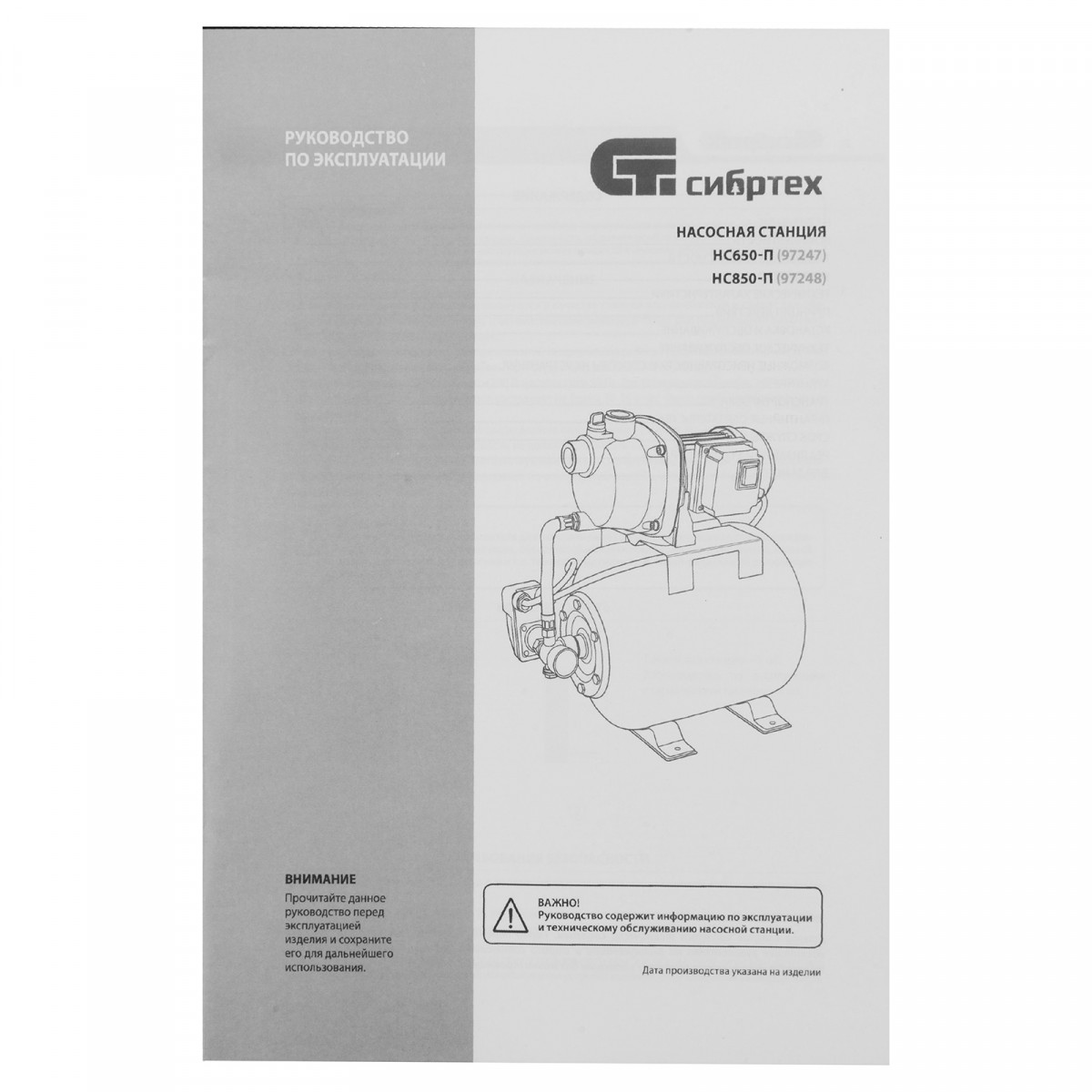 Насосная станция НС650-П, 650 Вт, напор 37 м, 3200 л/ч, ресивер 19 л Сибртех