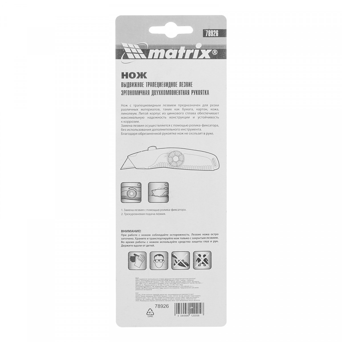 Нож, 19 мм, выдвижное трапециевидное лезвие, эргономичная двухкомпонентная рукоятка Matrix