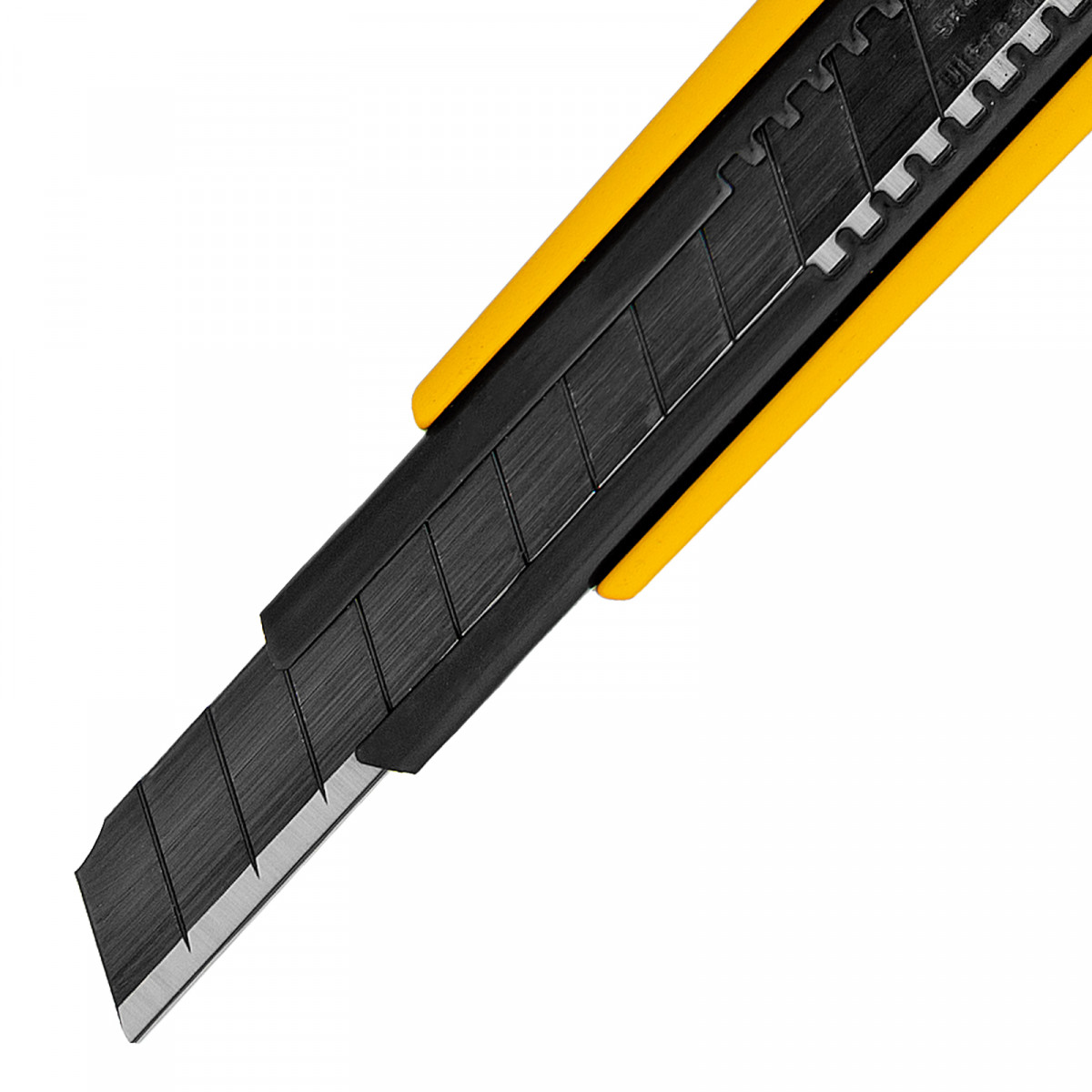 Нож, 9 мм, сменное лезвие, SK4, алюминиевый корпус, торцевой зажим Denzel