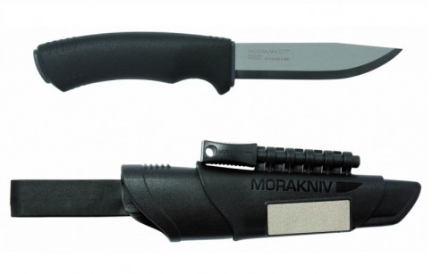 *Нож Mora Bushcraft Survival (Мора Бушкрафт Survival) – не нож, а целый набор для выживания! Bushcraft Survival в основном предназначен для тех, кто предпочитает подолгу проводить время в походах, на рыбалке, вдали от цивилизации. Основное отличие ножа для выживания Mora Bushcraft Survival от большинства других походных ножей – наличие в комплекте алмазного точила и огнива. Этим острейшим ножом легко резать бумагу, строгать древесину. Нож Mora Bushcraft Survival имеет длину клинка 106 мм и ширину 23 мм, что делает его достаточно компактным. Рукоять из мягкого каучука очень эргономична. Масса ножа вместе с ножнами - всего 200 грамм. Знаменитая шведская сталь Sandvik, используемая для изготовления клинка данной модели Мора Бушкрафт, содержит 0.6% углерода. Также для предотвращения коррозии в сталь добавлен хром (ок. 15%). Надежный клинок максимальной толщиной 2,5 мм заточен с помощью лазера в лучших традициях шведского производителя ножей Mora. Нож Мора Бушкрафт Survival оснащен системой высекания искр Mor