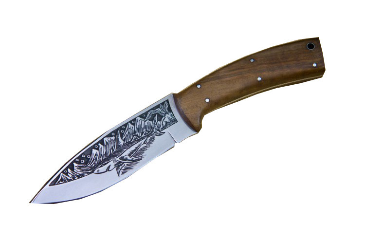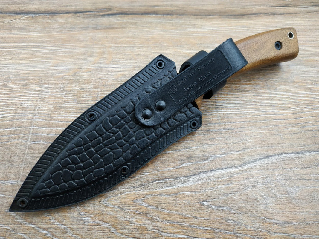 Нож является одним из самых важных инструментов как в походе, так и на охоте или рыбалке. С его помощью возможно не только моментально вскрыть консервную банку, но и разрезать веревку или прорубить тропинку в зарослях. Помимо этого, ножи могут быть использованы в ряде других сфер, например спорт или кулинария. Также не каждый нож требует наличия лицензии. Туристические ножи, например, не относятся к холодному оружию, из-за чего их может приобрести любой желающий. Производственное предприятие ООО ПП «Кизляр» занимается выпуском высококачественных ножей начиная с конца 90х годов. Огромный ассортимент компании, который создается по современным стандартам мастерами своего дела, порадует своим разнообразием. Весь товар этого производителя проходит полевые испытания перед тем как оказаться на складах и полках магазинов. Представленная модель угловатого ножа с особым художественным оформлением "Акула-2" отлично справится со всеми своими задачами, которые могут пасть на неё во время обычного использования. Лезвие изготовлено из AUS-8. Рукоятка сделана из дерева ореха. Общая длина модели равна 260 мм. Длина клинка равна 135 мм, толщина 2,4 мм. Твердость находится на уровне 57-59 HRC. ОБРАЩАЕМ ВАШЕ ВНИМАНИЕ: Данная модель не является холодным оружием.