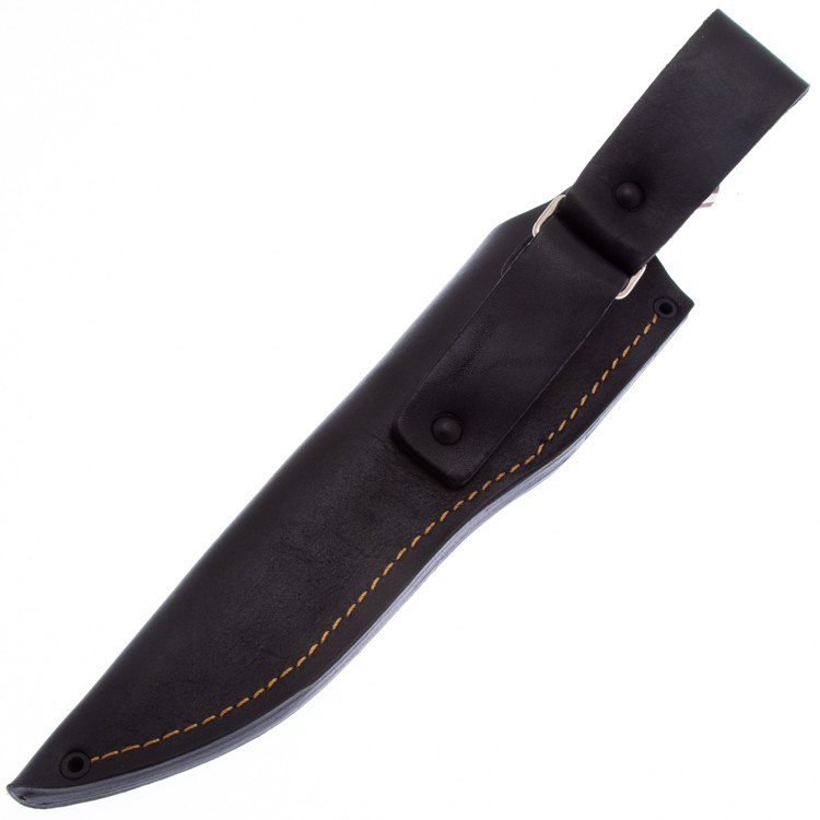 Рукоять выполнена из стабилизированной древесины ореха. Дерево является одним из самых традиционных и распространенных материалов для рукоятей ножей. Основным плюсом древесины является то, что, благодаря своей текстуре, она позволяет без особых усилий практически любую художественную форму рукояти. Традиционно используется на охотничьих ножах.