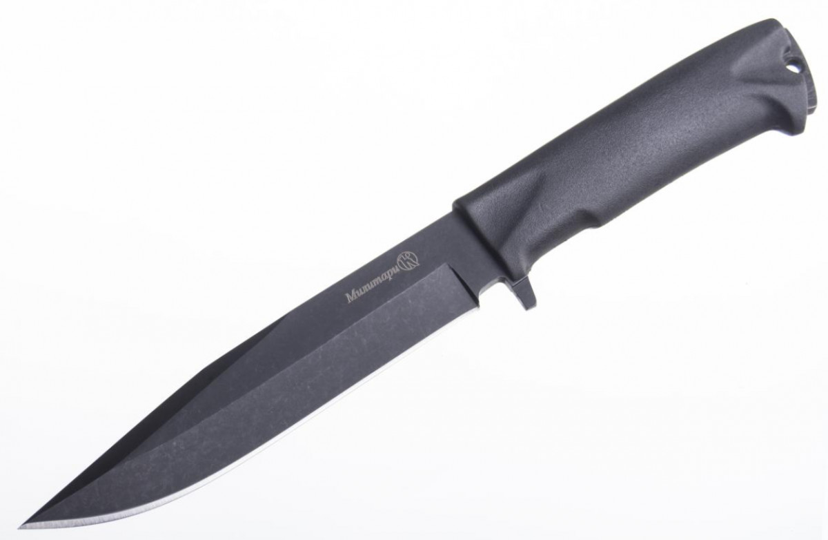 Милитари станет отличным помощником всем тем, чья работа связана с возможностью оказаться в экстремальной ситуации. Клинок имеет форму с небольшим понижением обуха по направлению к кончику. Благодаря особой форме клинка, нож отлично приспособлен для совершения колющих и режущих движений.