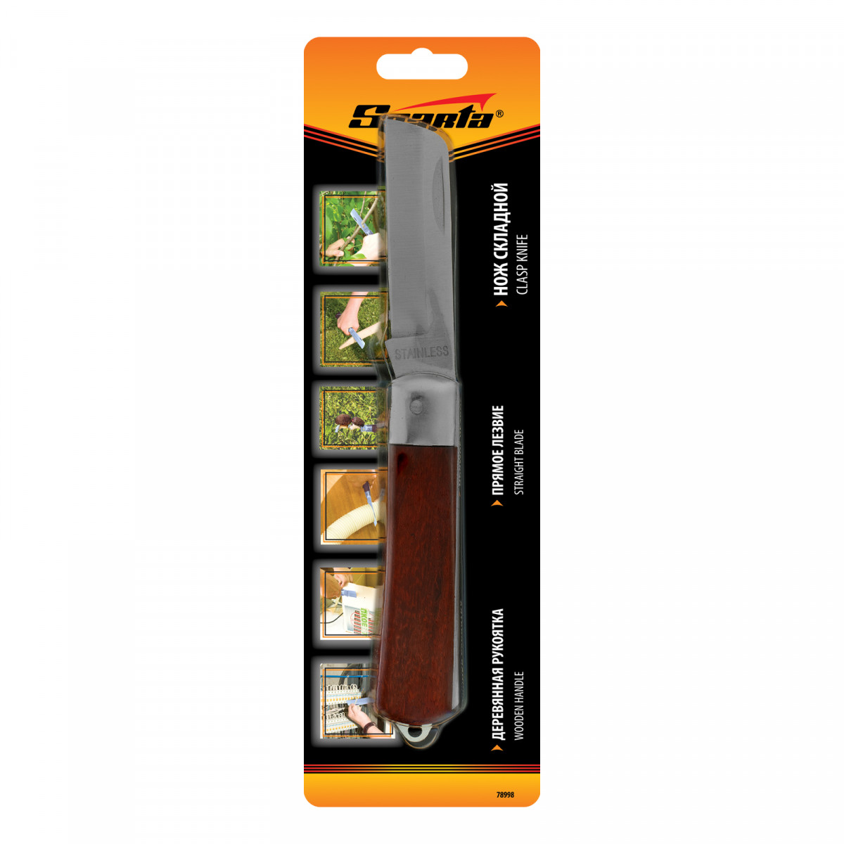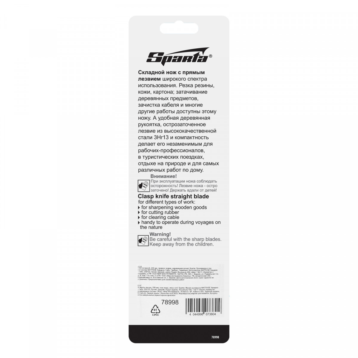 Нож складной, 200 мм, прямое лезвие, деревянная ручка Sparta