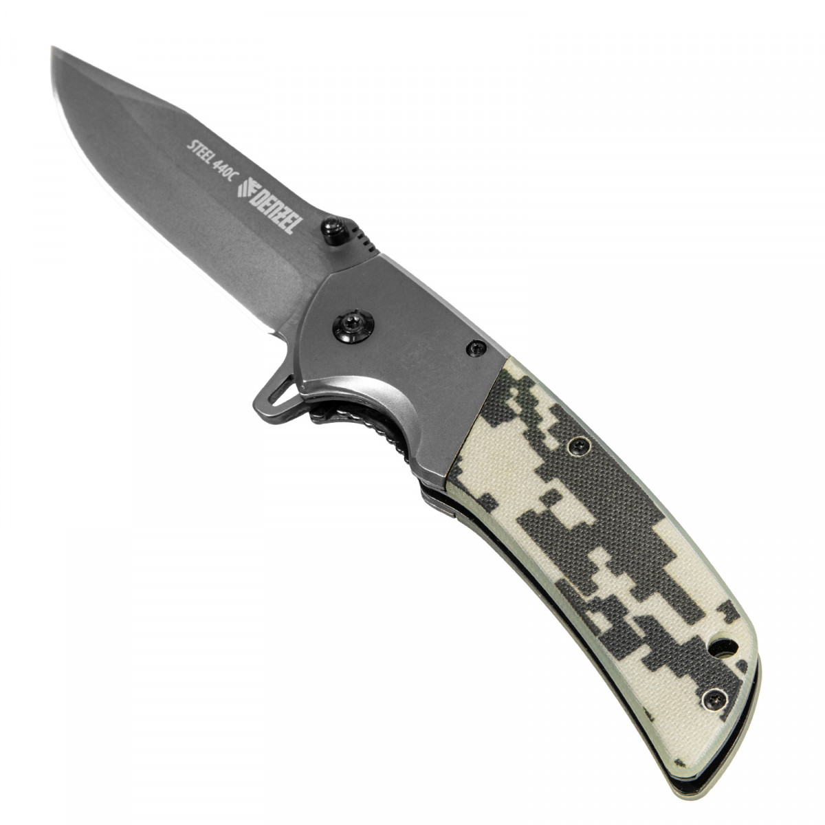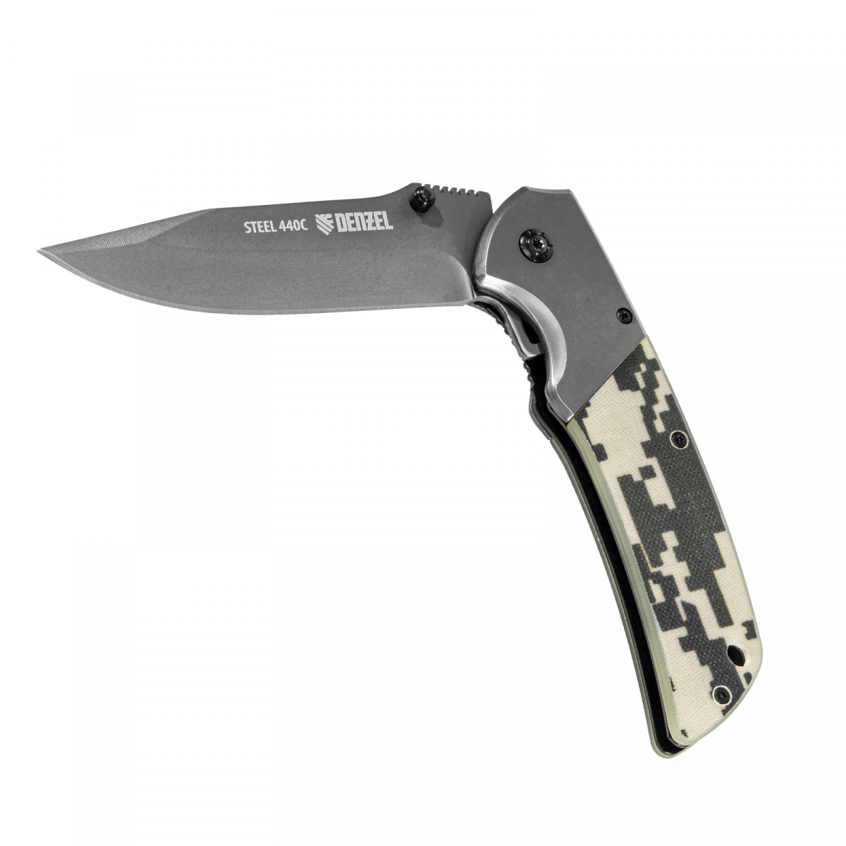 Многоцелевой складной нож Denzel 79207 длиной 220 мм, с системой Liner-Lock, накладкой G10 на классической рукоятке, находит широкое применение при активном отдыхе на природе, во время рыбалки и охоты. Флиппер помогает быстро раскрывать нож.