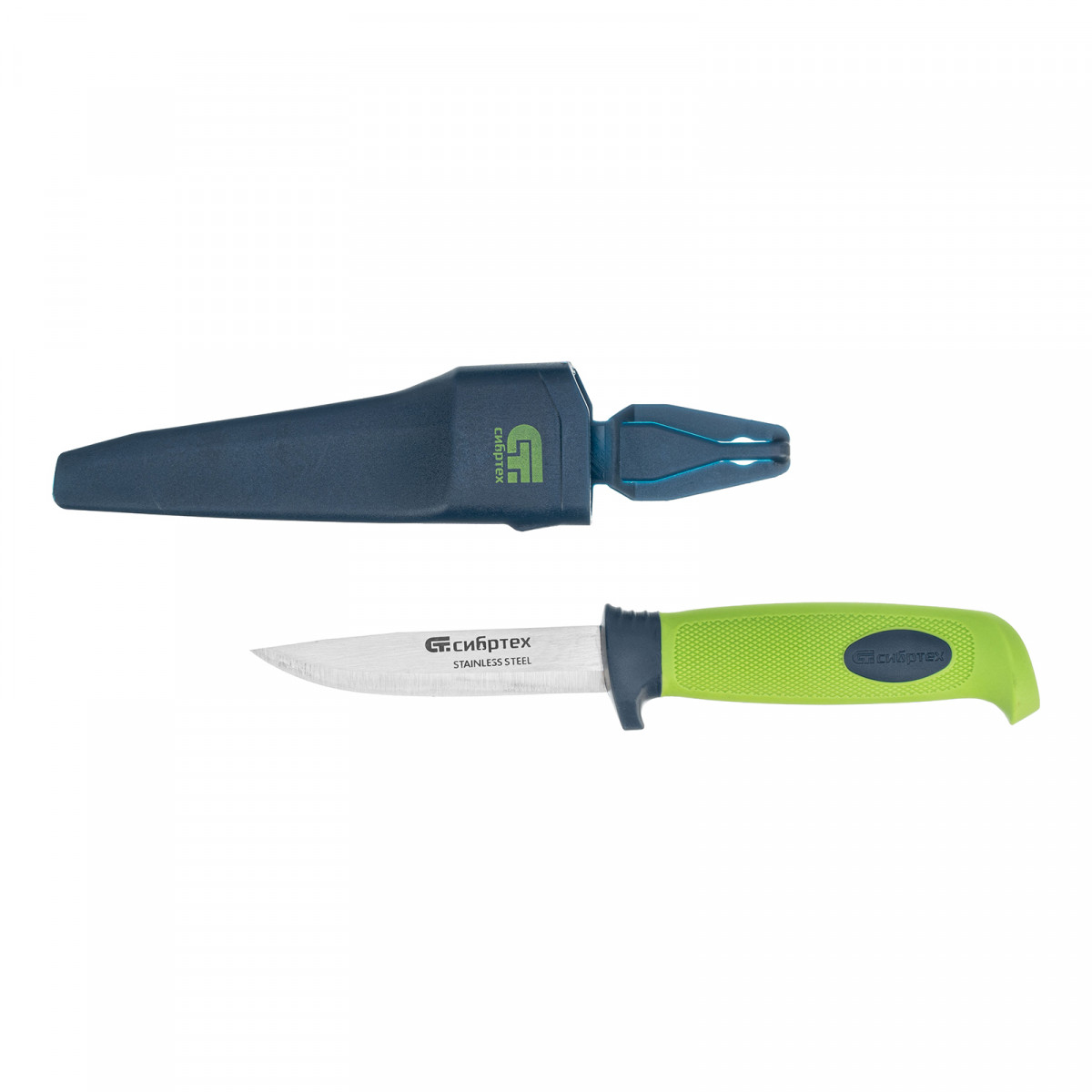 Нож универсальный с чехлом, обрезиненная рукоятка, 220 мм, лезвие 100 мм Сибртех