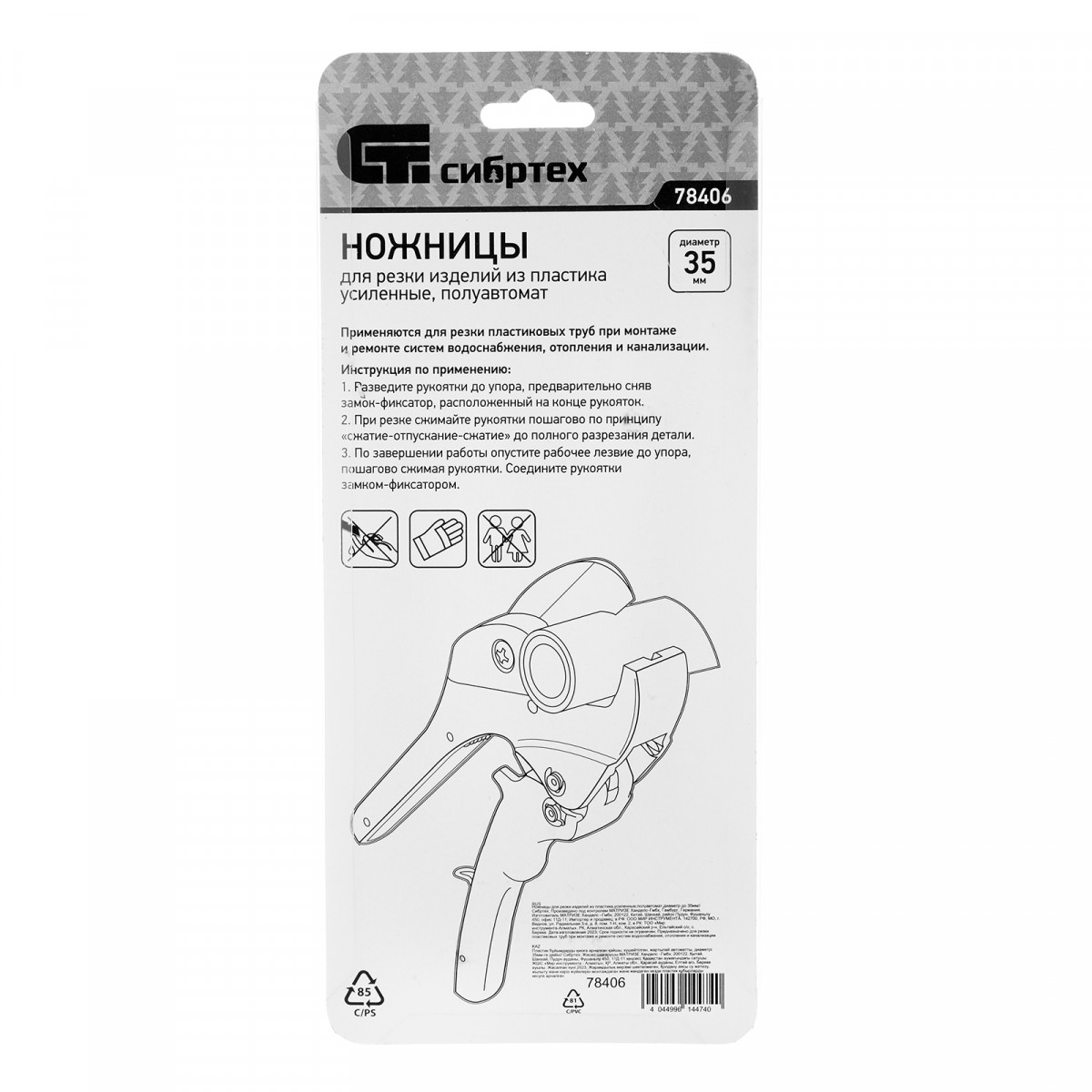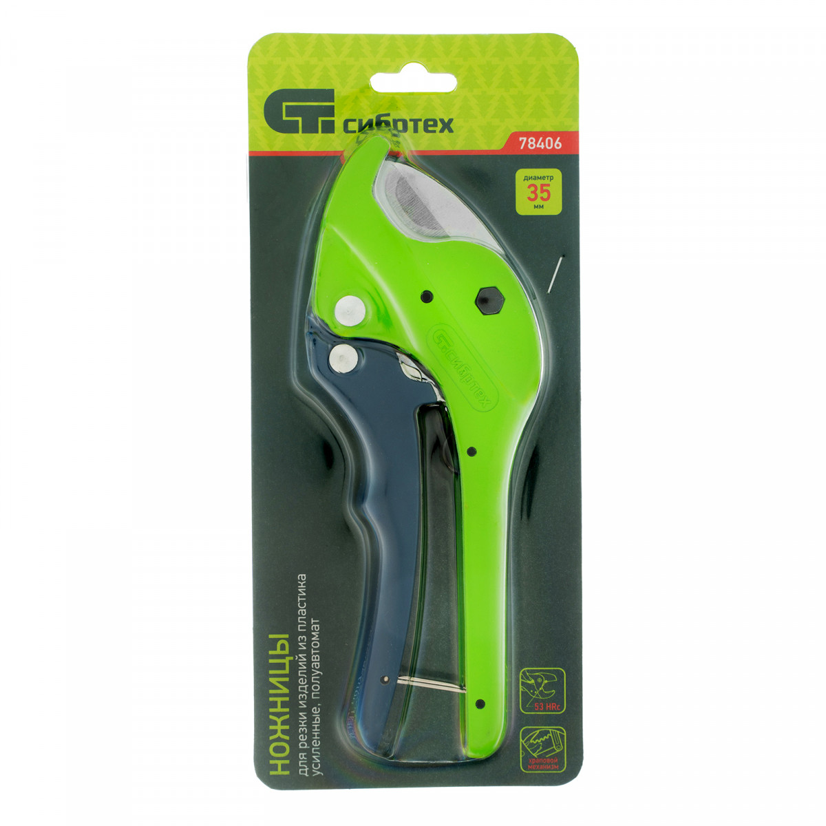 Ножницы для резки изделий из пластика, усиленные, полуавтомат, D до 35 мм Сибртех