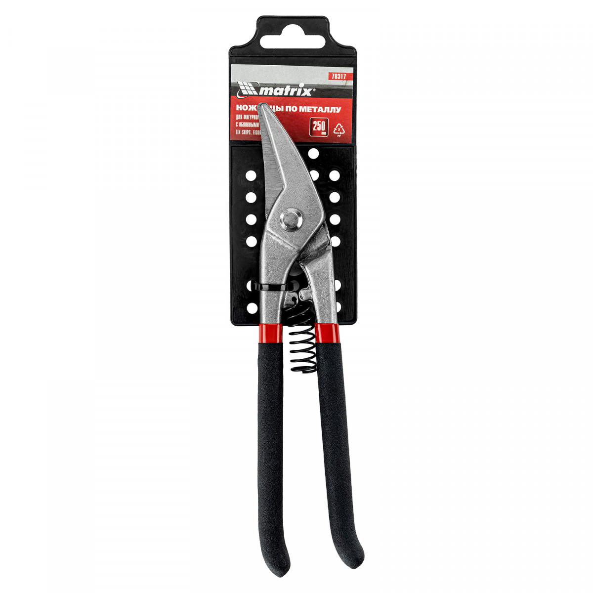 Ножницы по металлу, 250 мм, для фигурного реза, обливные рукоятки Matrix