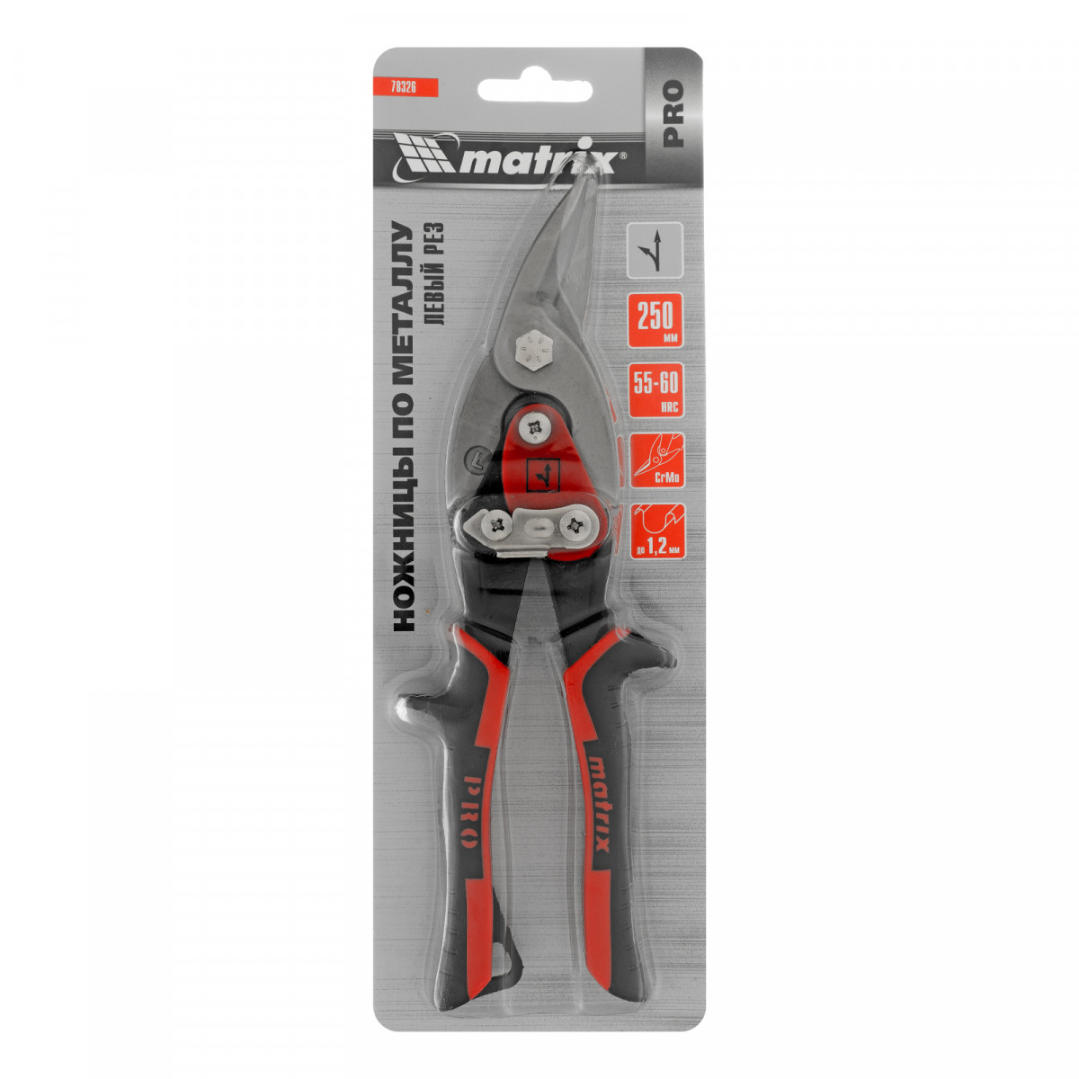 Ножницы по металлу, 250 мм, левый рез, сталь CRMO, двухкомпонентные рукоятки, PRO Matrix