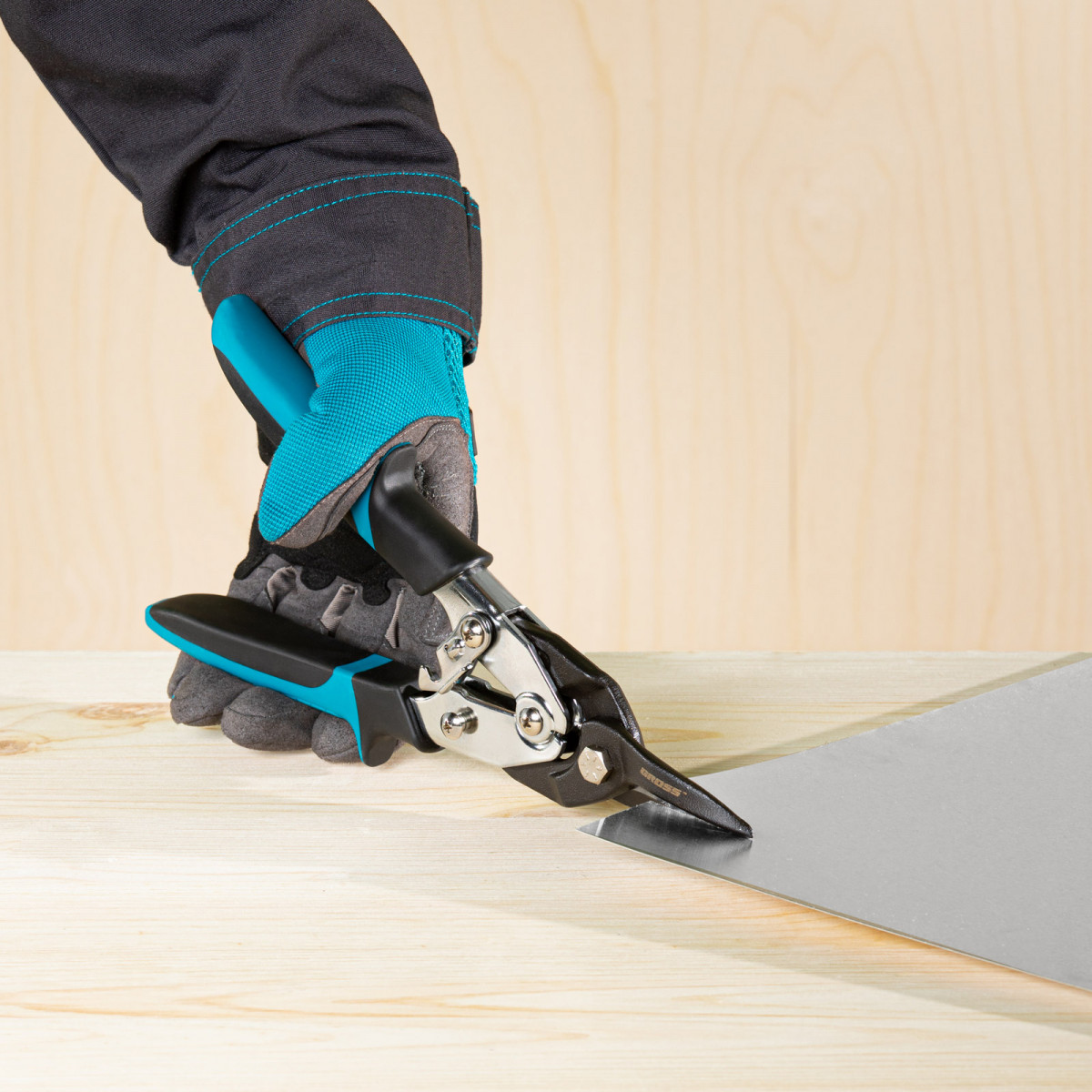 - Высокая режущая способность — лезвия закалены индукционными токами до твердости 60-62 HRC, поэтому успешно справляются с резкой листового металла.