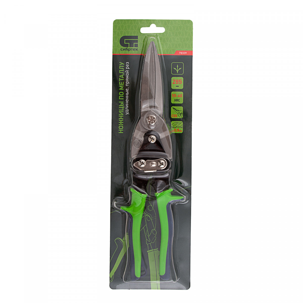 Ножницы по металлу, удлиненные, 285 мм, пряморежущие, двухкомпонентные обрезиненные рукоятки Сибртех