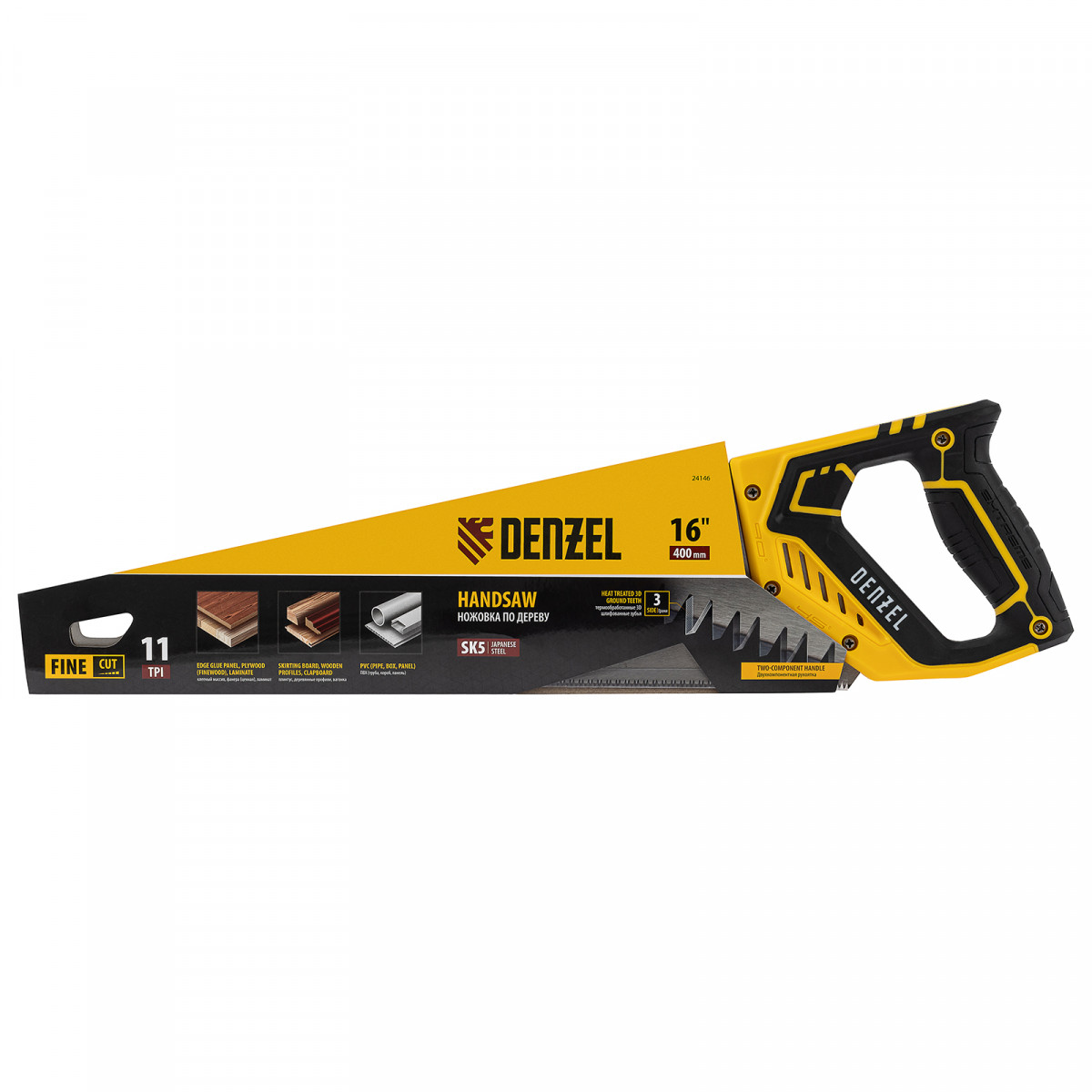 Ножовка по дереву, 400 мм, 11 TPI, зуб 3D, двухкомпонентная рукоятка Denzel