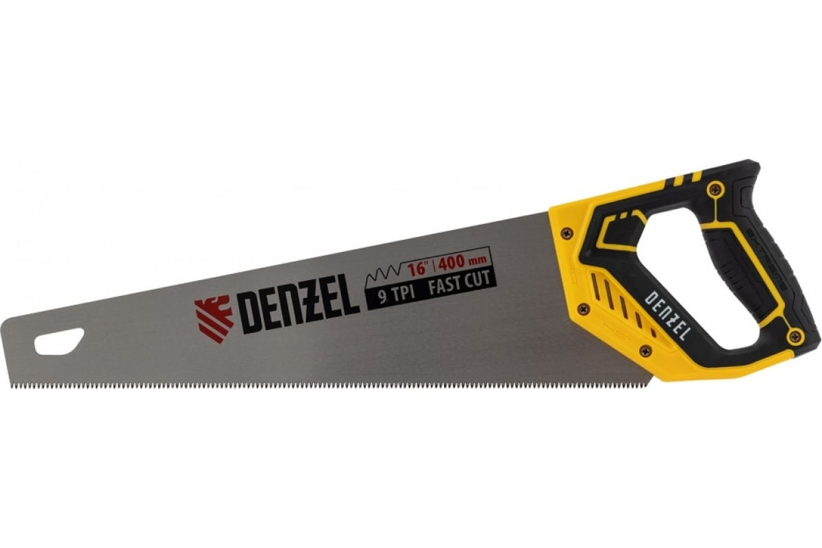 Ножовка по дереву 400 мм 9 TPI зуб 3D двухкомпонентная рукоятка Denzel