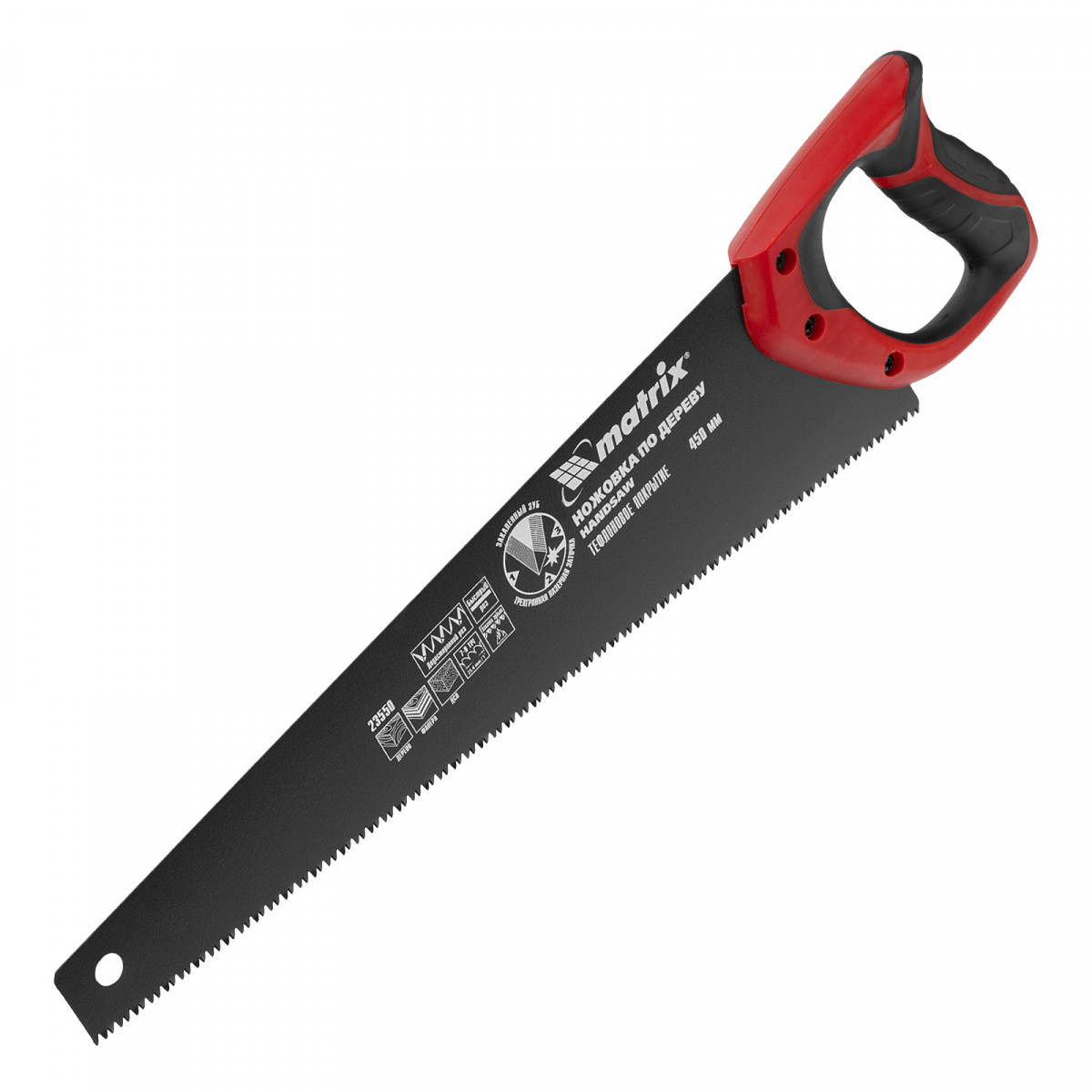 Ножовка по дереву, 450 мм, 7-8 TPI, зуб-3D, каленый зуб, тефлоновое покрытие полотна, двухкомпонентная рукоятка Matrix
