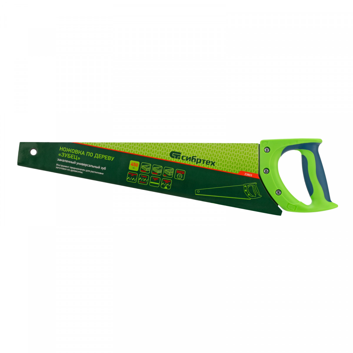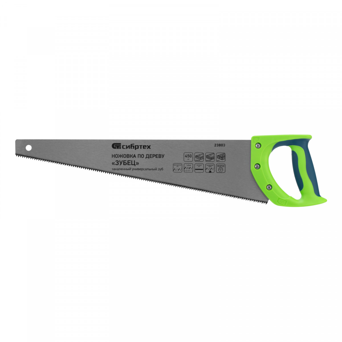 Ножовка по дереву "Зубец", 450 мм, 7-8 TPI, каленый зуб 2D, двухкомпонентная рукоятка Сибртех