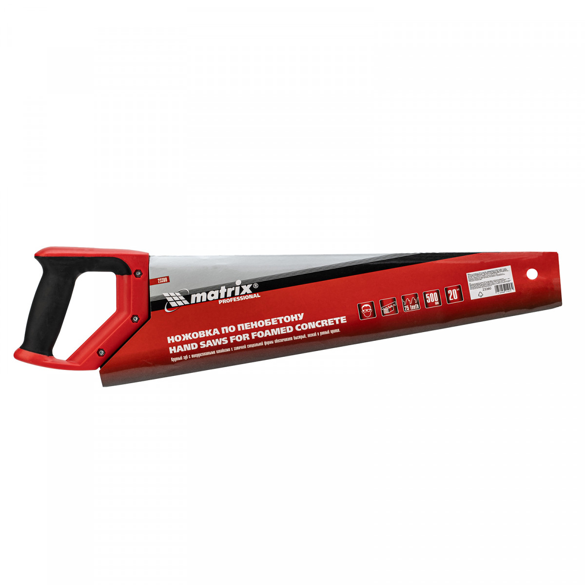 Ножовка по пенобетону, 500 мм, защитное покрытие, твердосплавные напайки на зубья, двухкомпонентная рукоятка Matrix