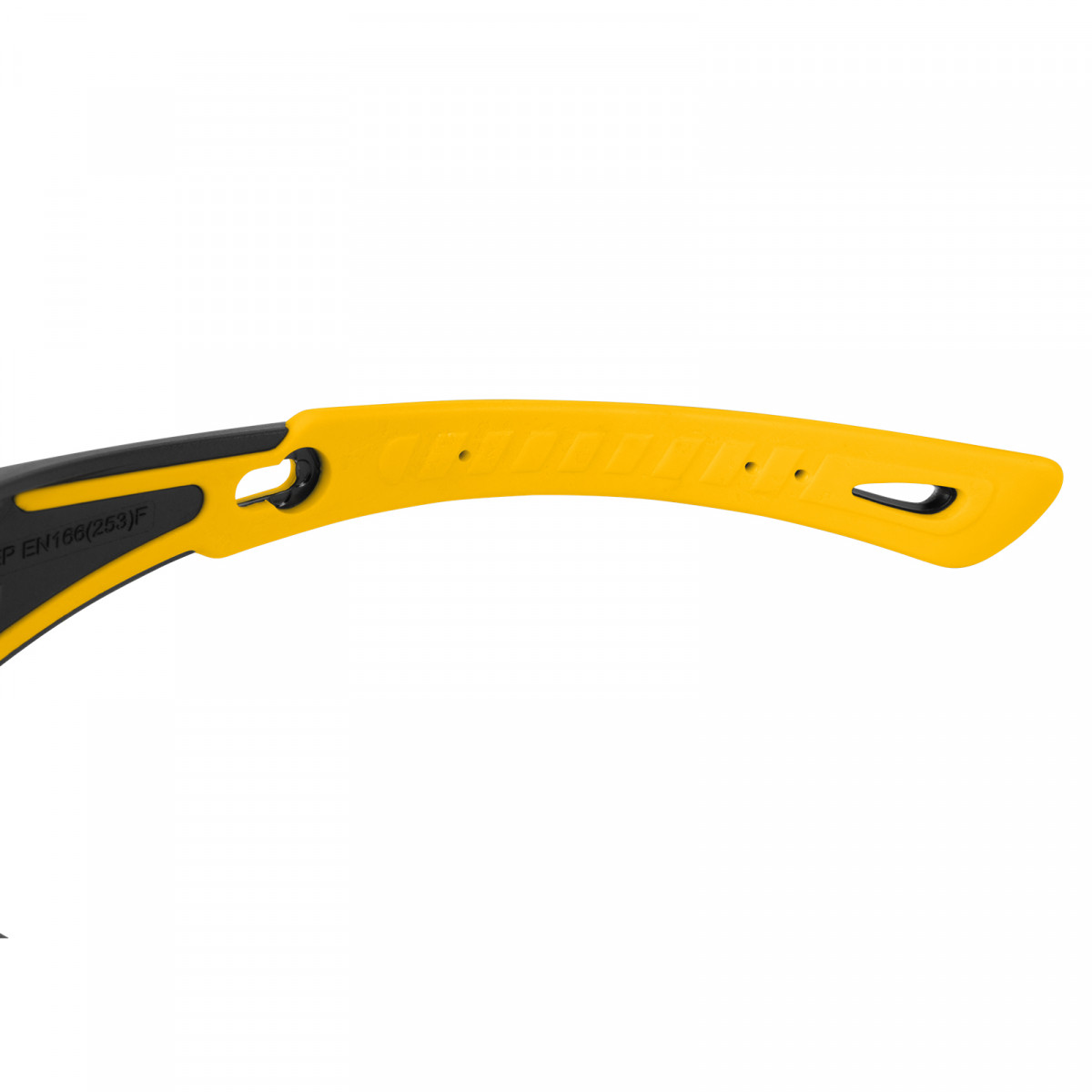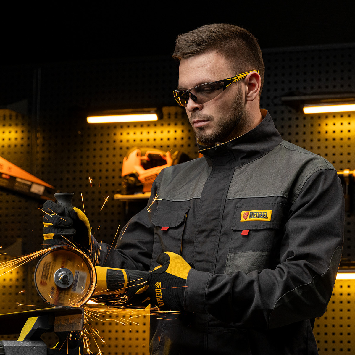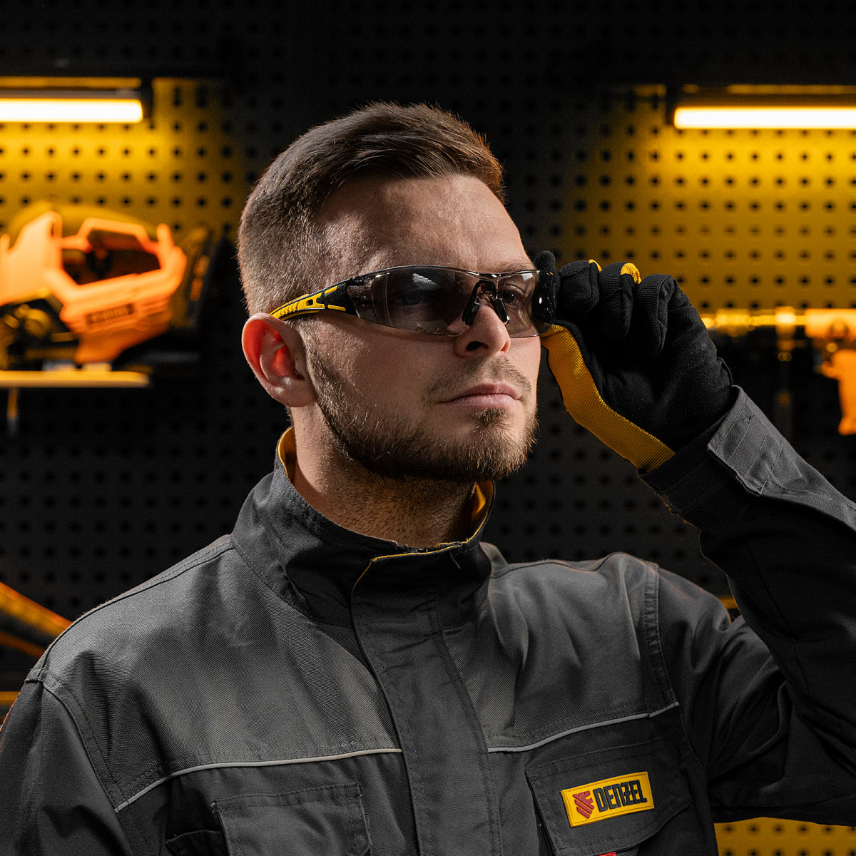 Легкие универсальные защитные очки открытого типа Denzel 89193 с поликарбонатными дымчатыми линзами и 2-компонентными дужками предназначены для защиты глаз от механических повреждений и УФ-излучения. Очкам присвоен класс механической прочности F, они обеспечивают защиту от высокоскоростных частиц с низкоэнергетическим ударом V=45 м/с. Очки используются во время работы с электро- и бензоинструментом, на производстве и в быту.
